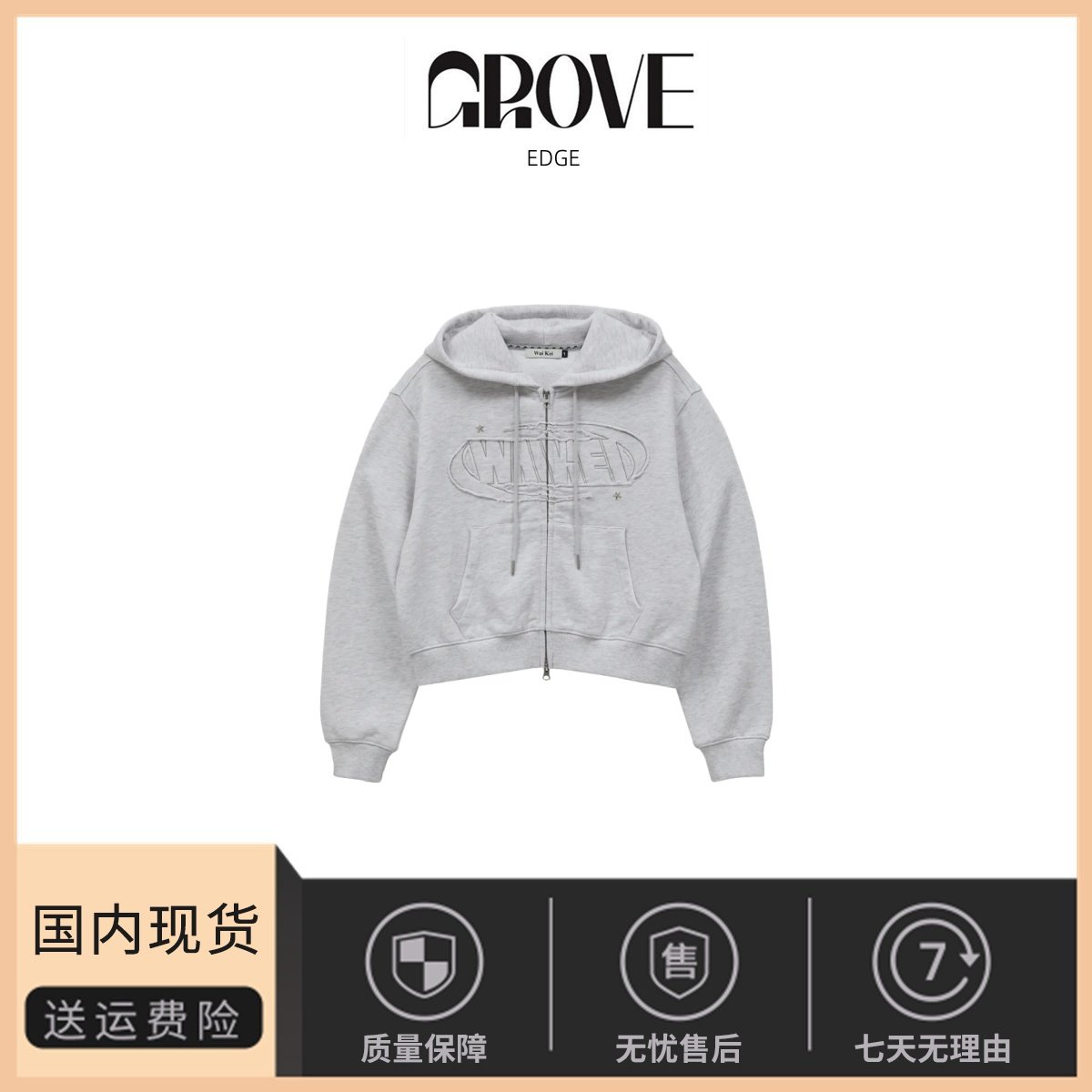 📚 【现货】GROVE EDGE韩国小众潮牌连帽卫衣女复古字母贴布拉链外套