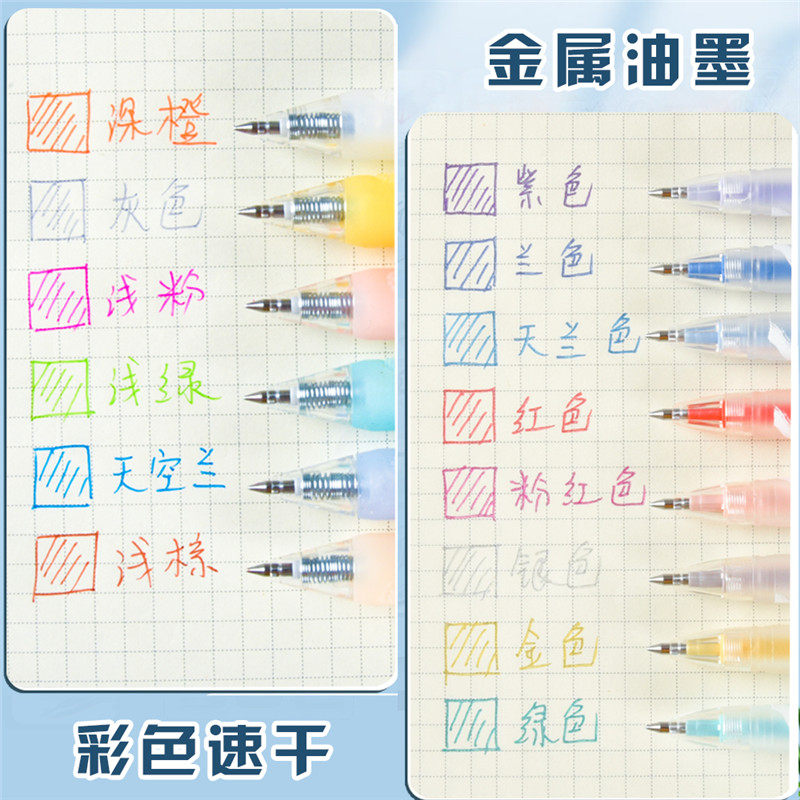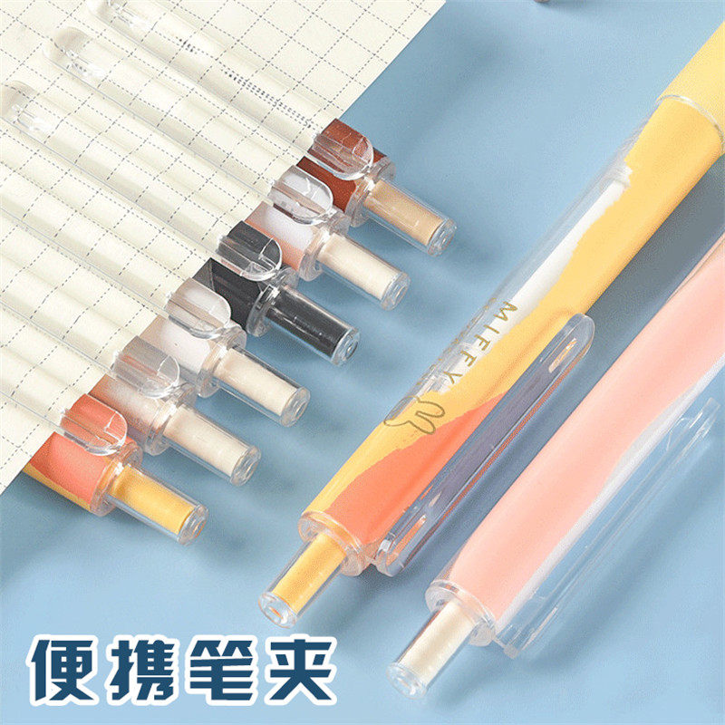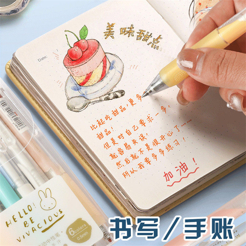 📚 晨光彩色笔6色套装学生用0.5按动子弹头中性笔可爱超萌少女心高颜值彩笔米菲元气清单系列笔记日记笔J3407