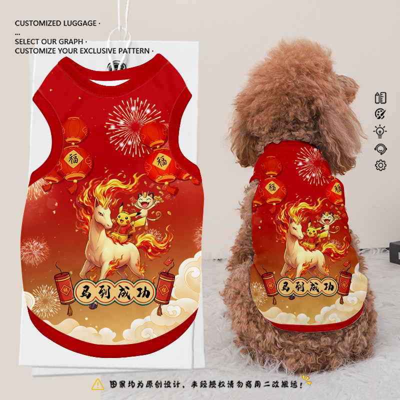 📚 2026新年宝可梦皮卡丘烈焰马喷火龙宠物背心猫咪狗狗衣服防掉毛
