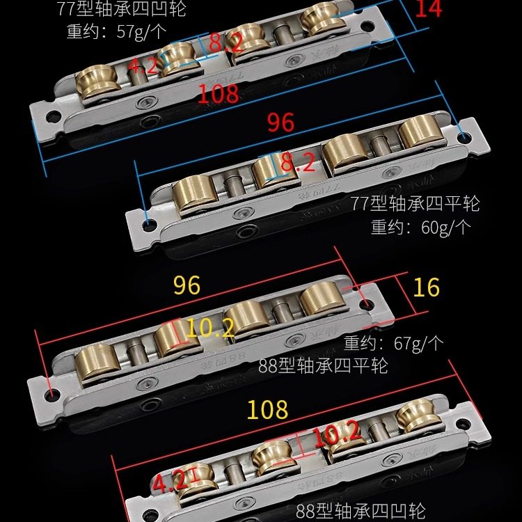 📚 塑钢门窗滑轮玻璃移门轮子推拉门窗户底部轨道滚轮不锈钢轴承配件