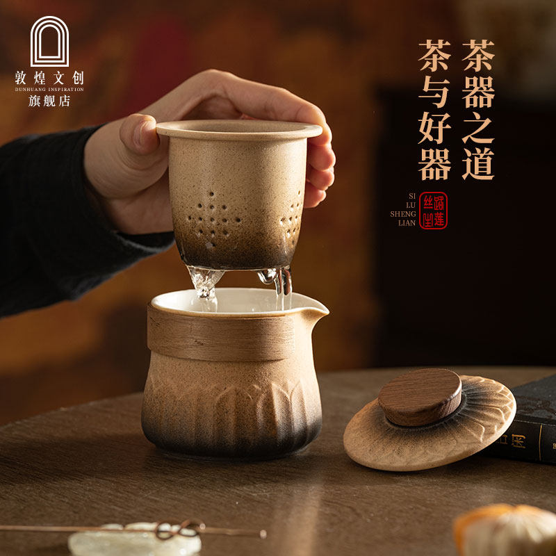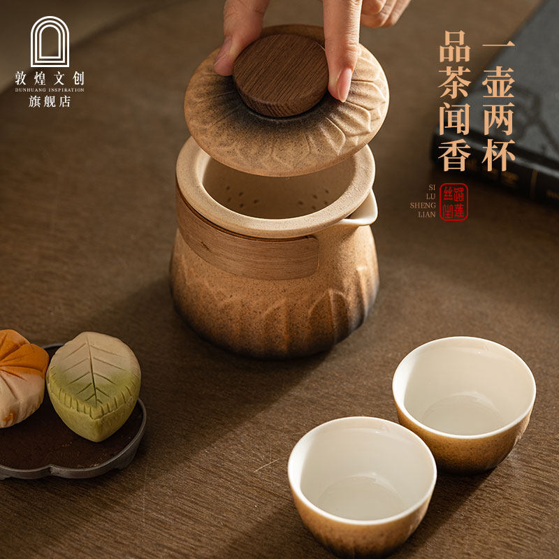 💥敦煌文创快客杯茶杯旅行便携陶瓷茶具一壶两杯套装:揭秘博物馆级生日礼物,券后价仅需147!🎁