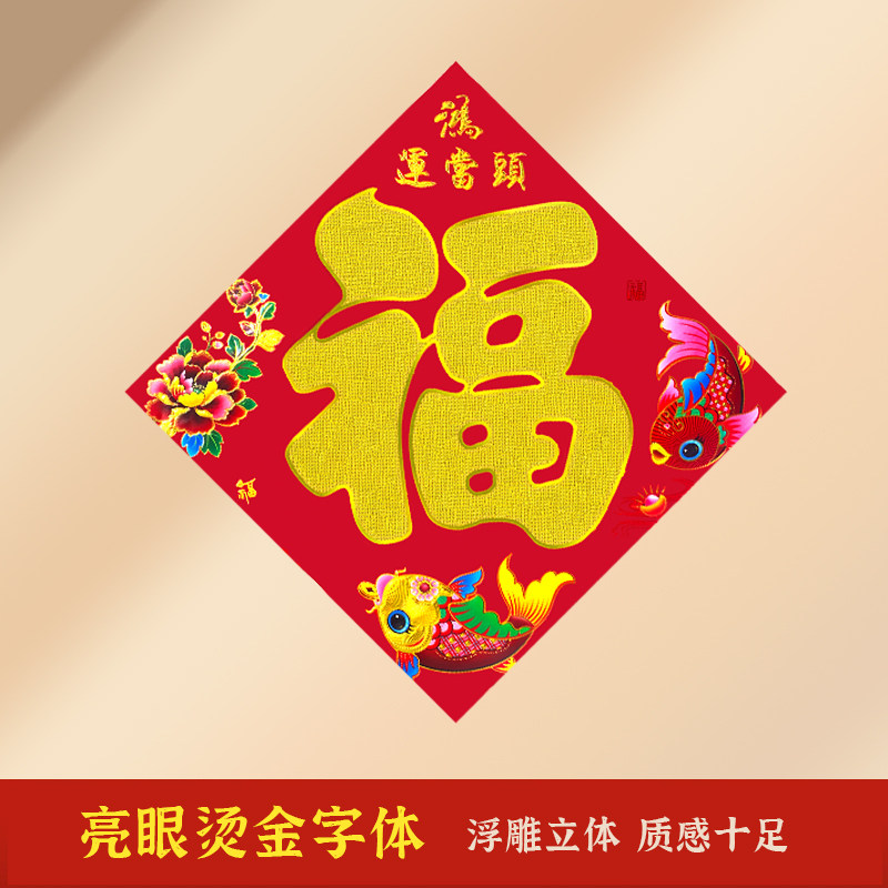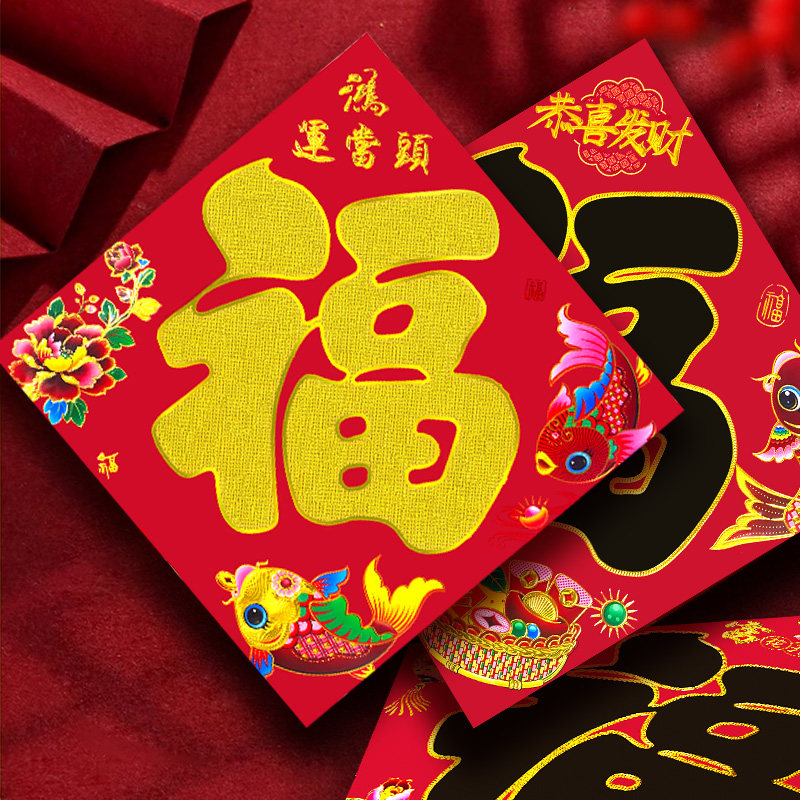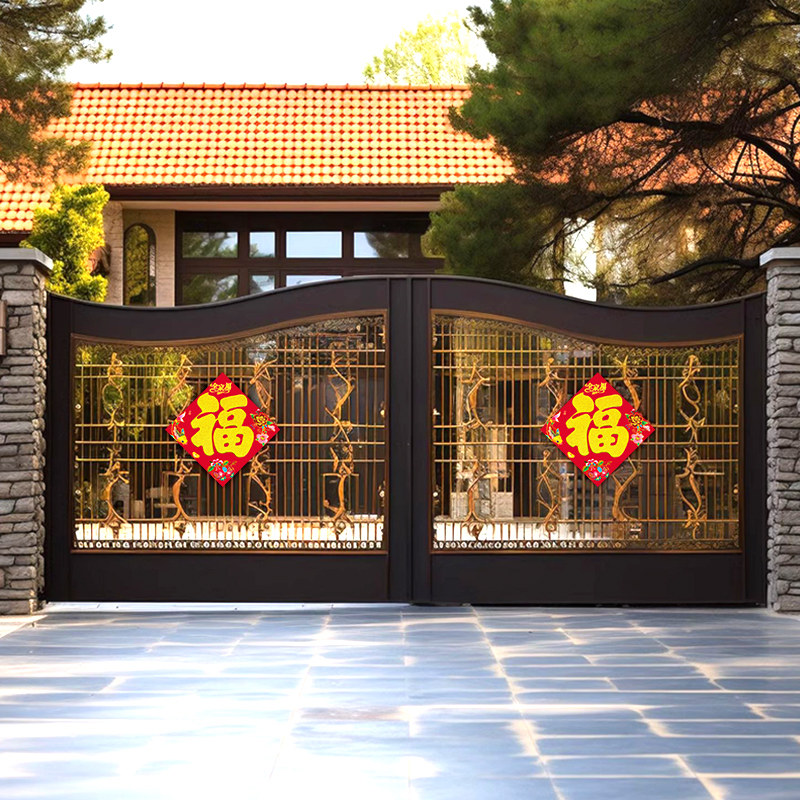 📚 铜版纸福大门贴画镭射福烫金黑福字贴对联配套门福