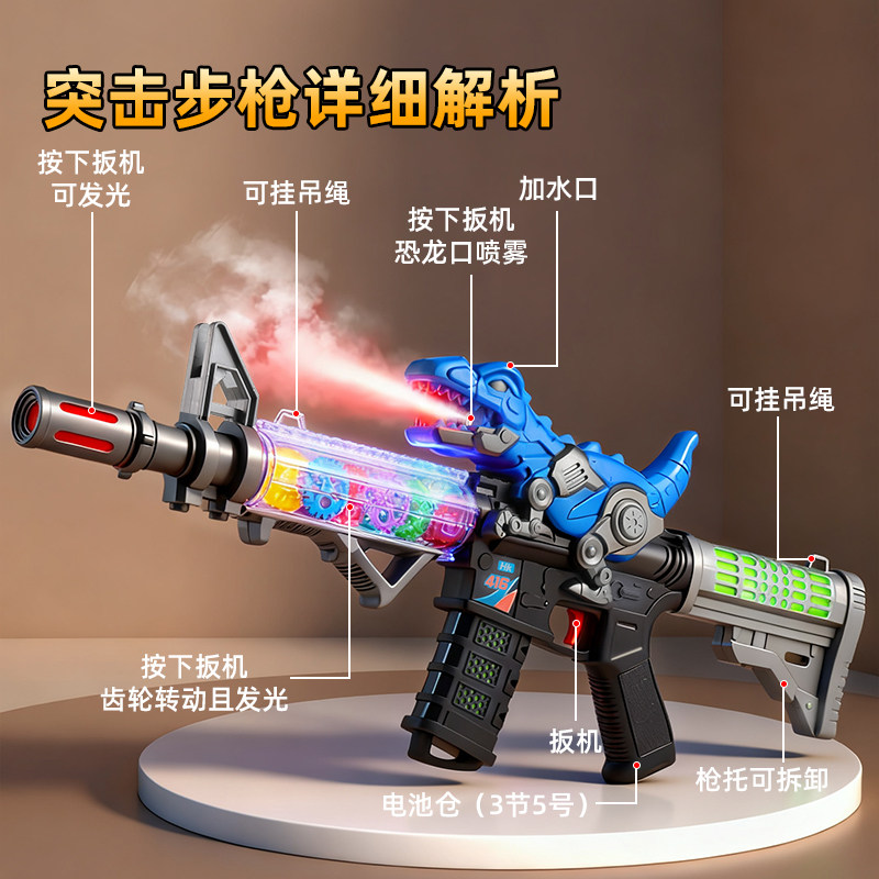 📚 儿童男孩电动喷雾声光恐龙枪3岁5宝宝仿真M416冲锋枪模型手枪玩具
