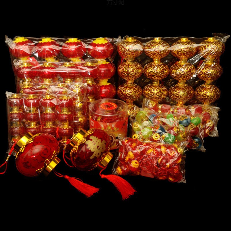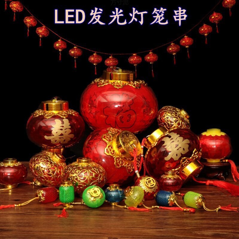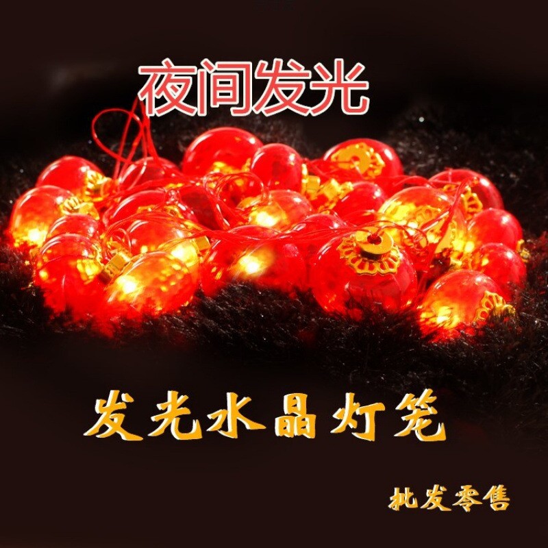 📚 水晶发光LED小红灯笼布置彩灯闪灯串灯带电塑料灯笼串彩灯条批发