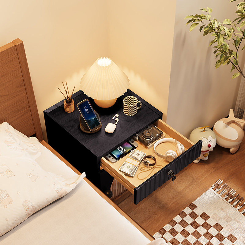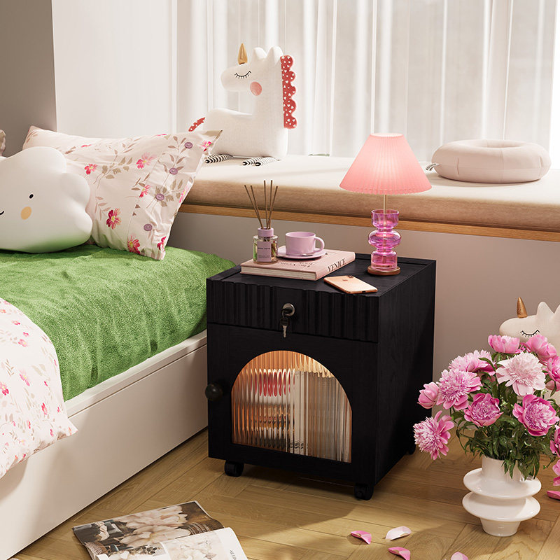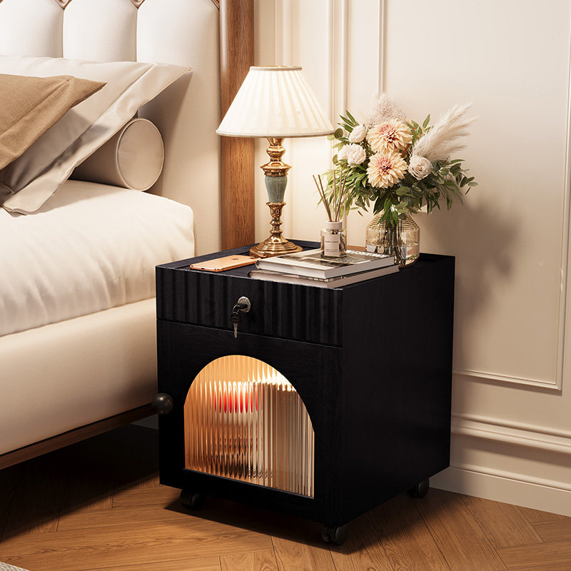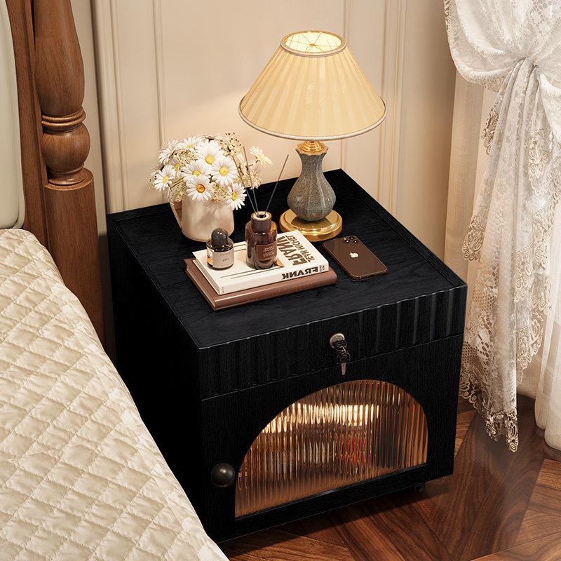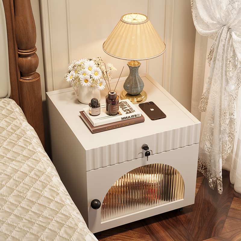 📚 实木床头柜带锁家用卧室带轮可移动小矮柜40cm宽30公分窄柜床边柜