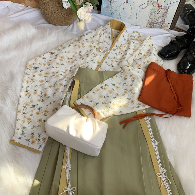 📚 椿松集-约茶上班日常宋制汉服碎花飞机袖抹胸防晒夏款大放量通勤