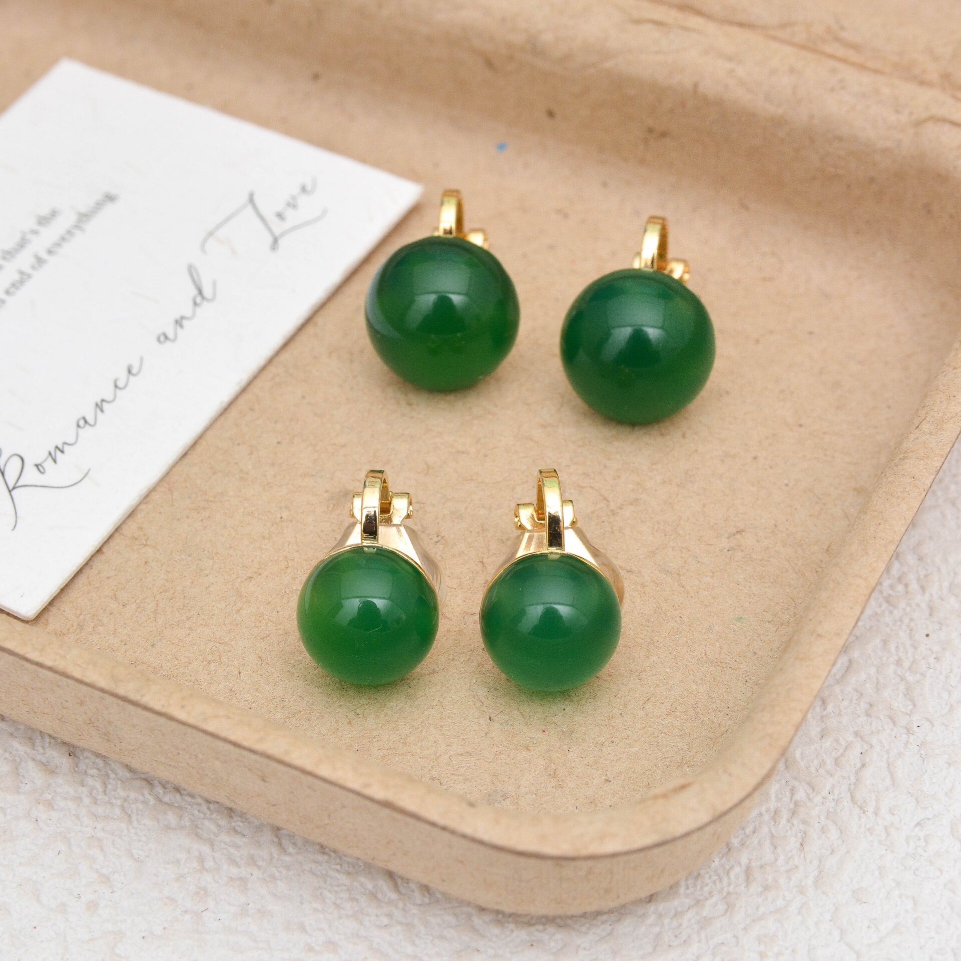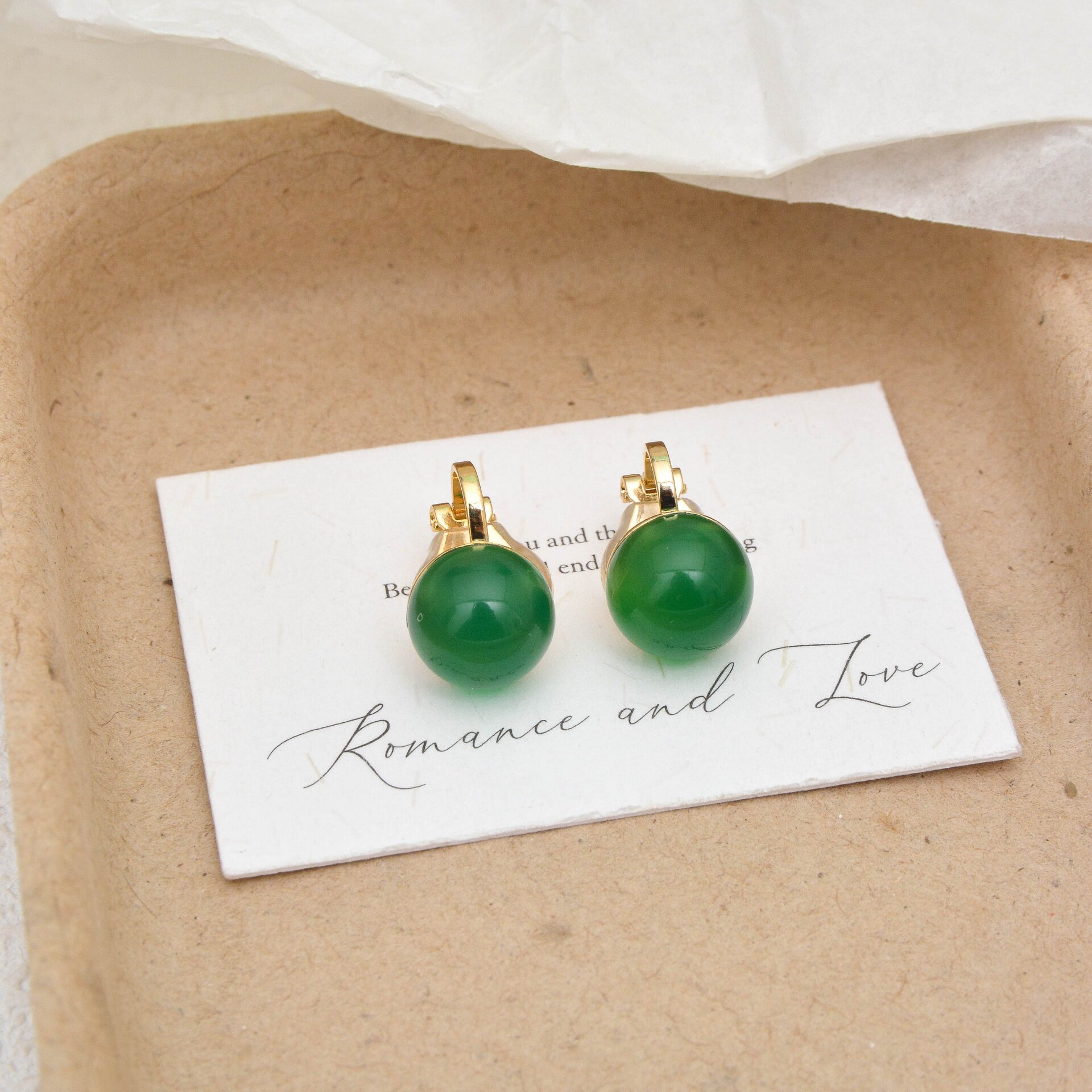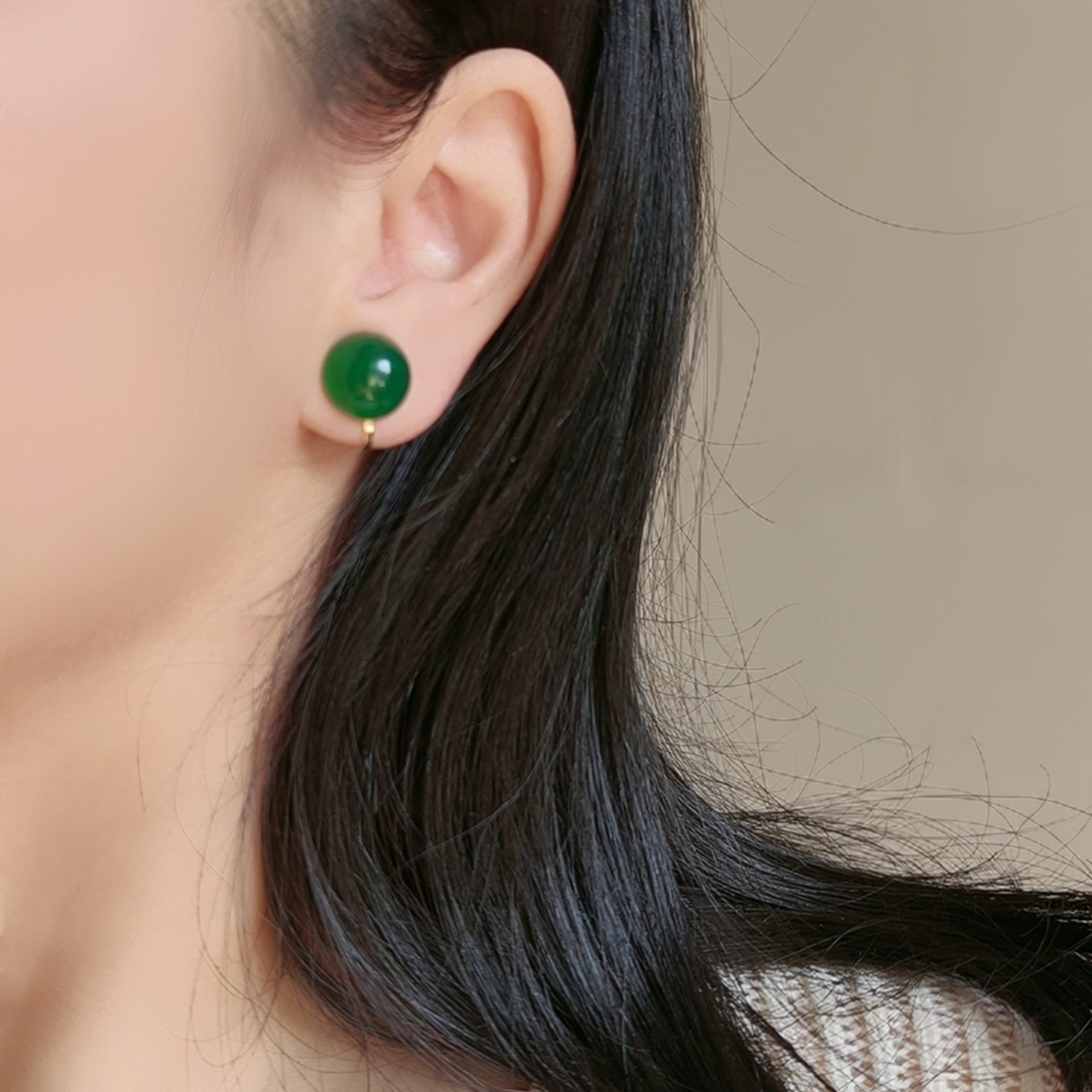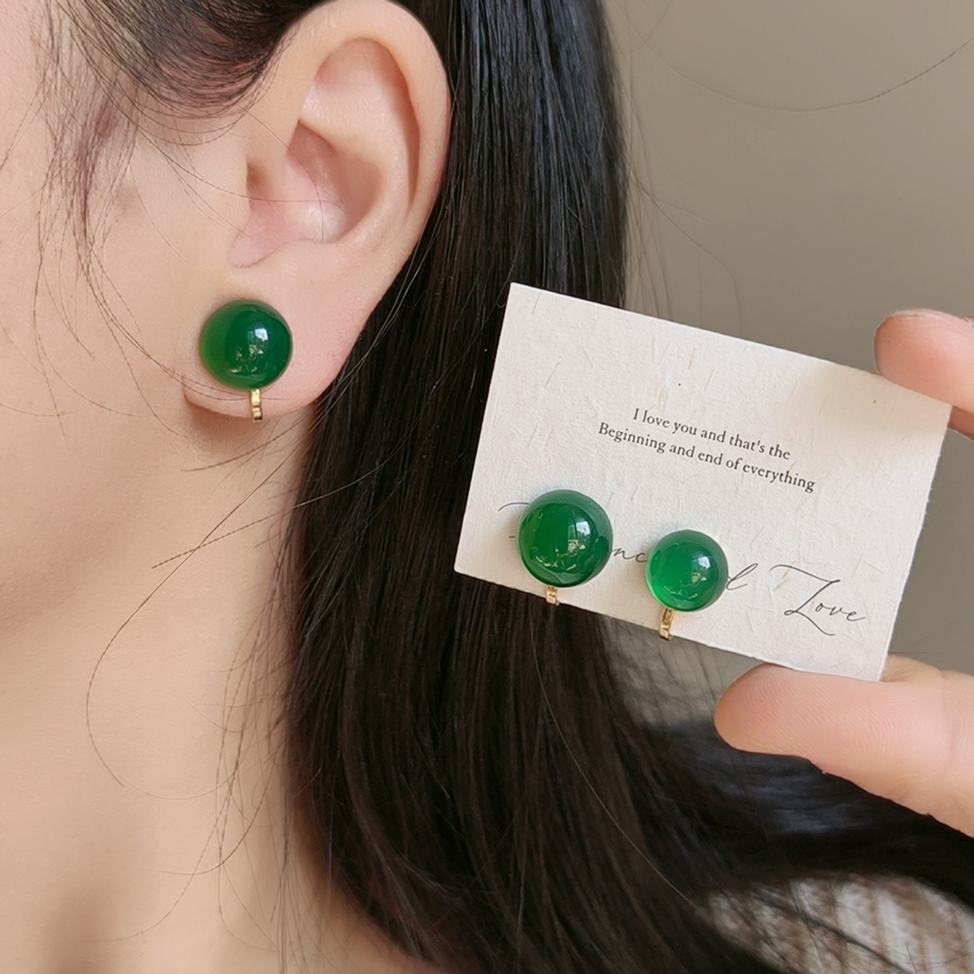 📚 新中式复古风绿珠半圆形三角耳夹女优雅气质免打孔耳钉无耳洞耳环