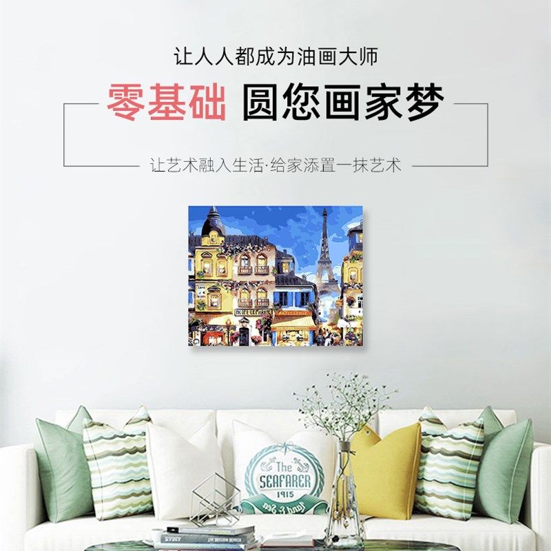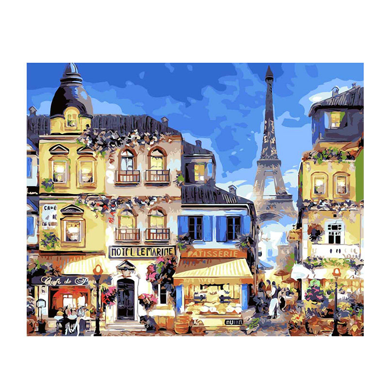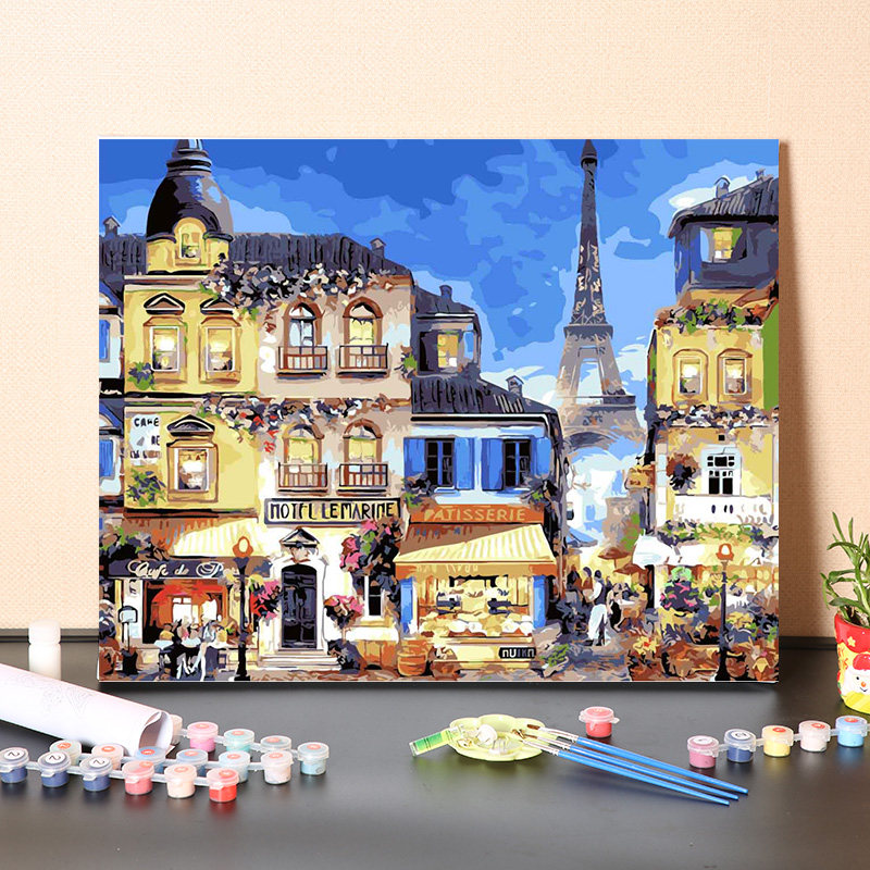 📚 数字油画diy手工填充法t国巴黎海事旅店建筑手绘涂色丙烯油彩画画