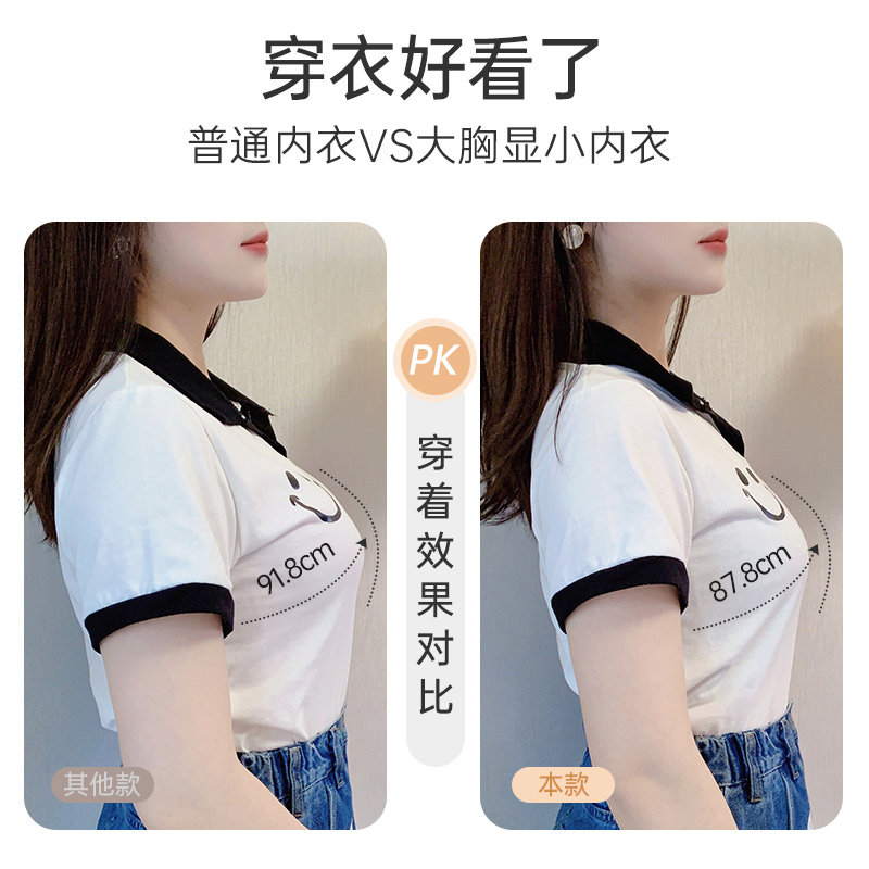 📚 依曼丽大胸显小抹胸式文胸 夏季薄款轻薄大码内衣女大罩杯收副乳