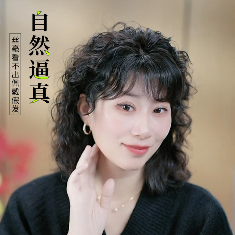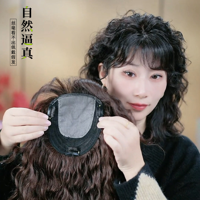 📚 假发头顶补发片羊卷发片女中老年遮白发仿真发发片自然逼真假发片