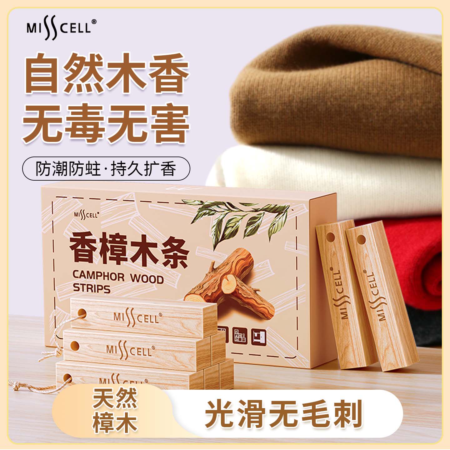📚 misscell天然香樟木条驱虫防蛀衣橱柜衣物衣服浴室防潮代替樟脑丸