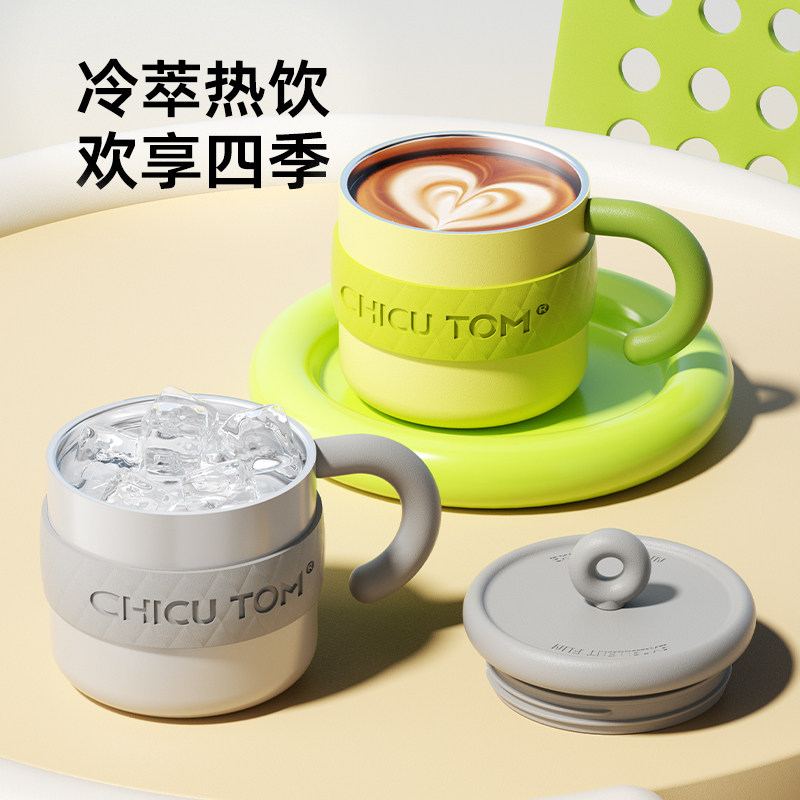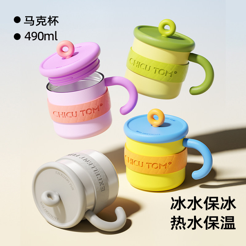 📚 奇古堂吨吨保温杯女生款马克杯带盖陶瓷咖啡杯子办公室水杯不锈钢