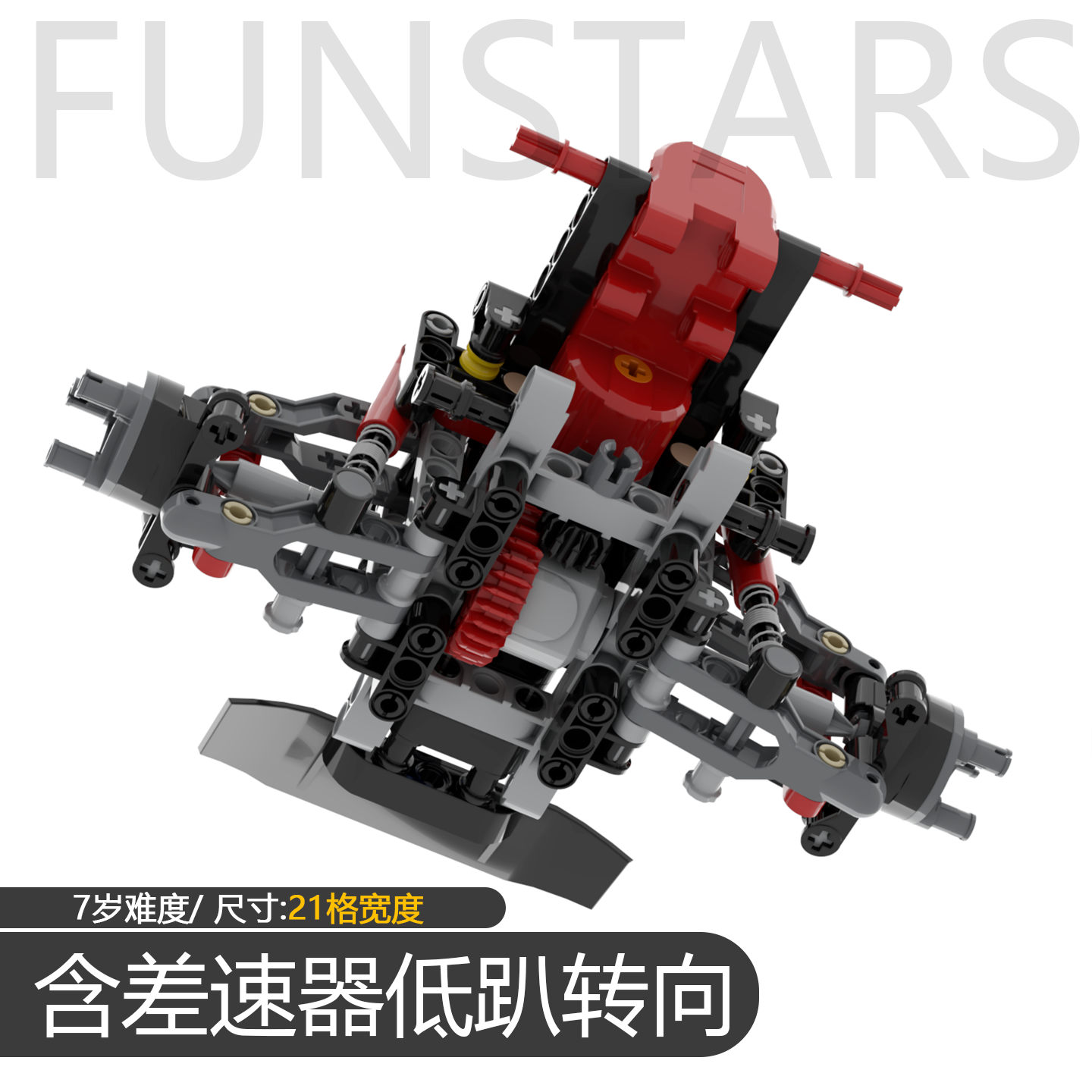 📚 低趴积木转向系统可以驱动可转向四代差速器四驱转向系统MOC改装