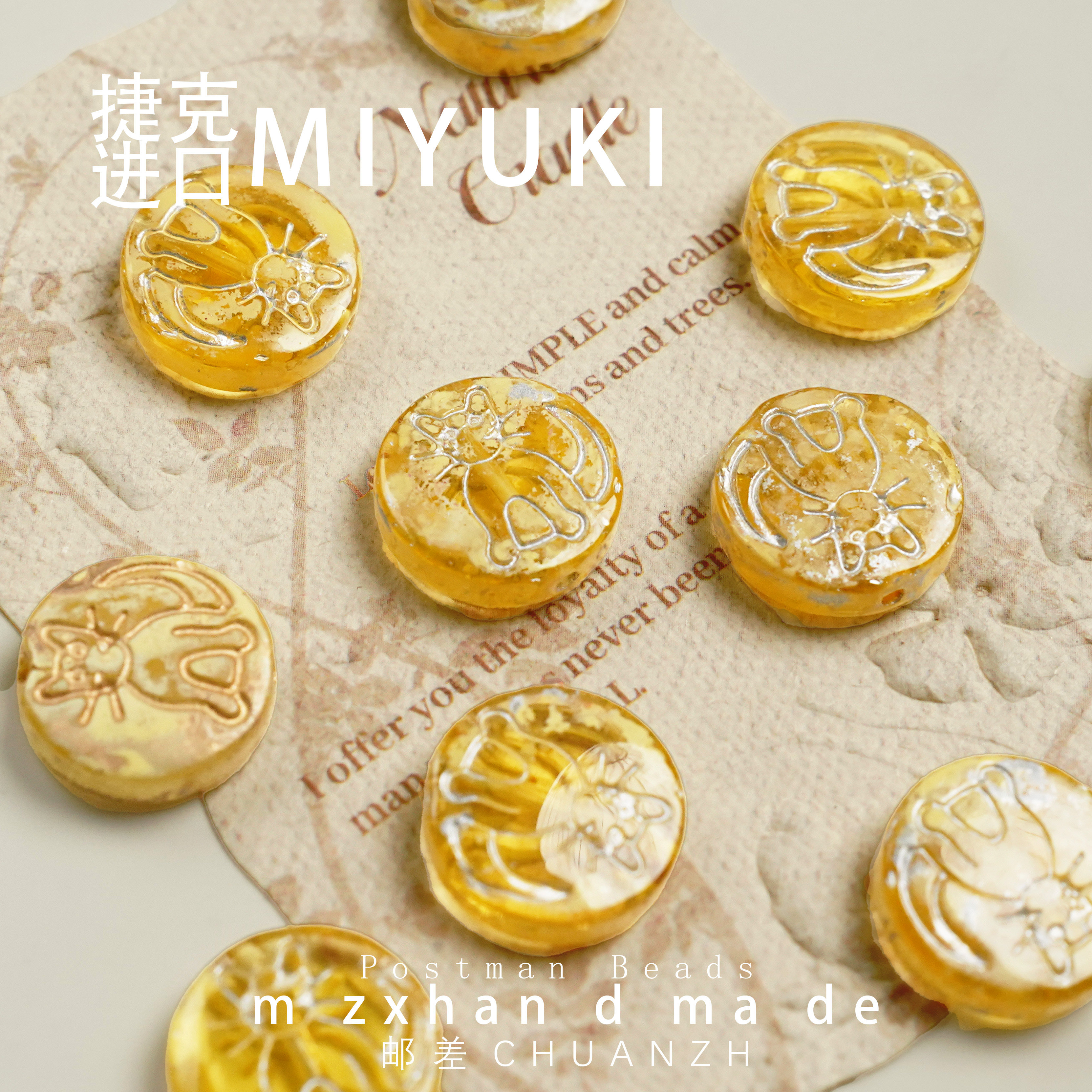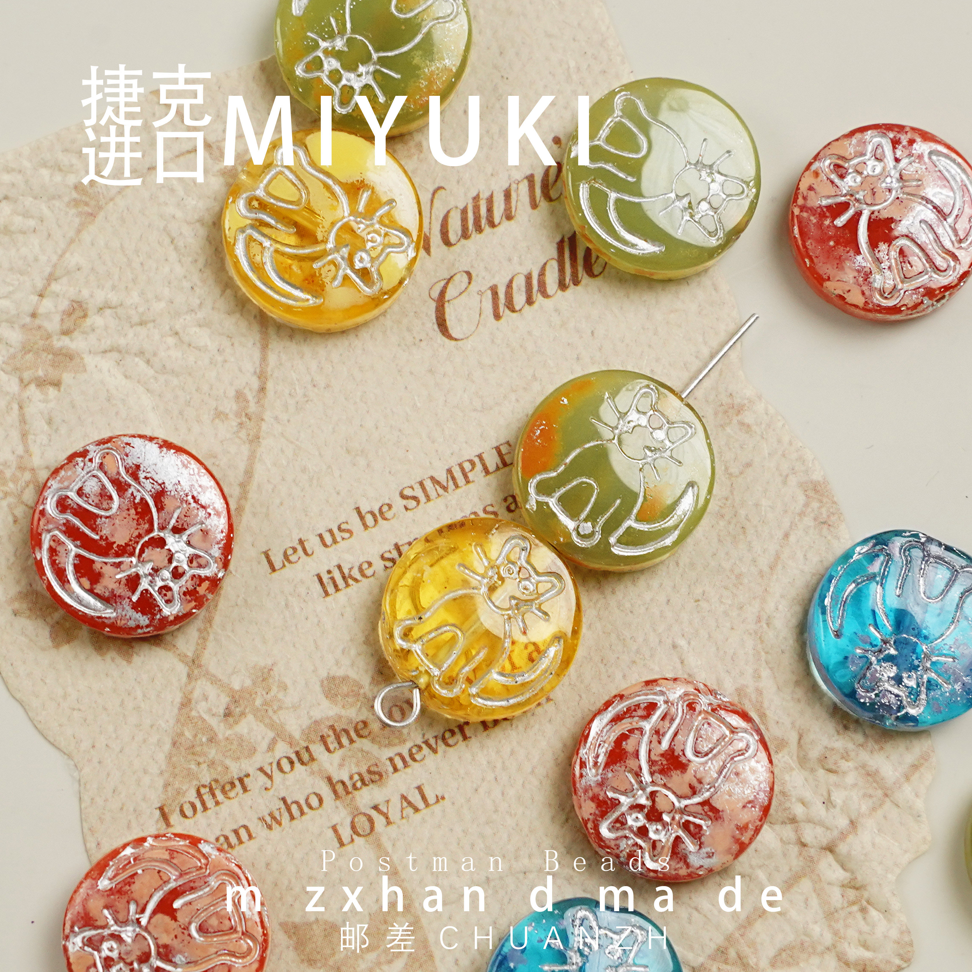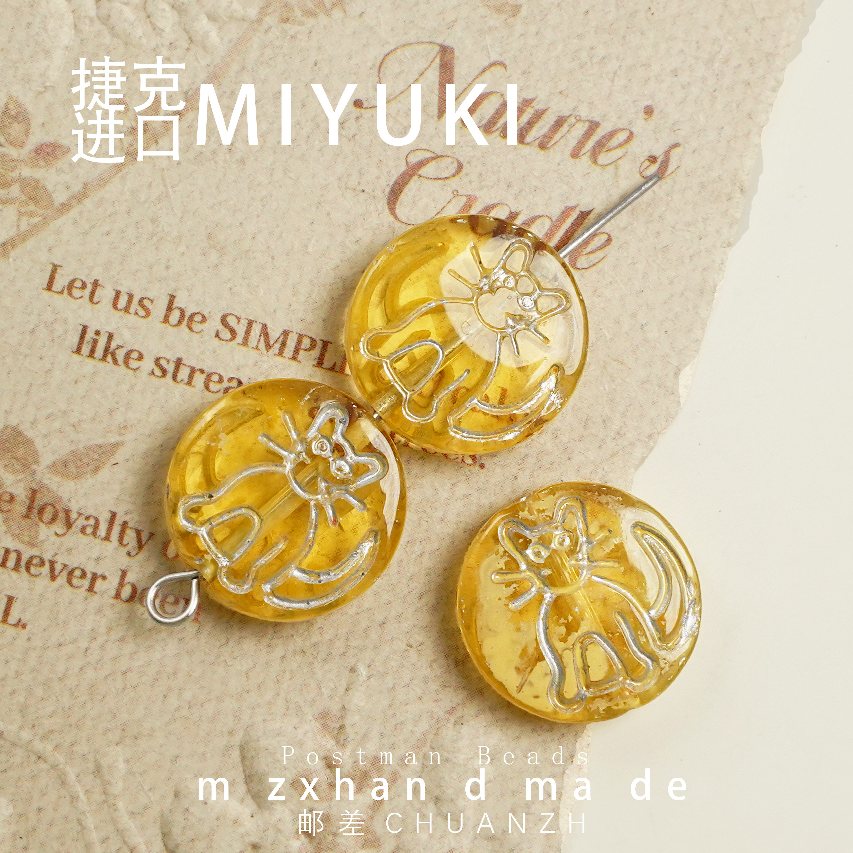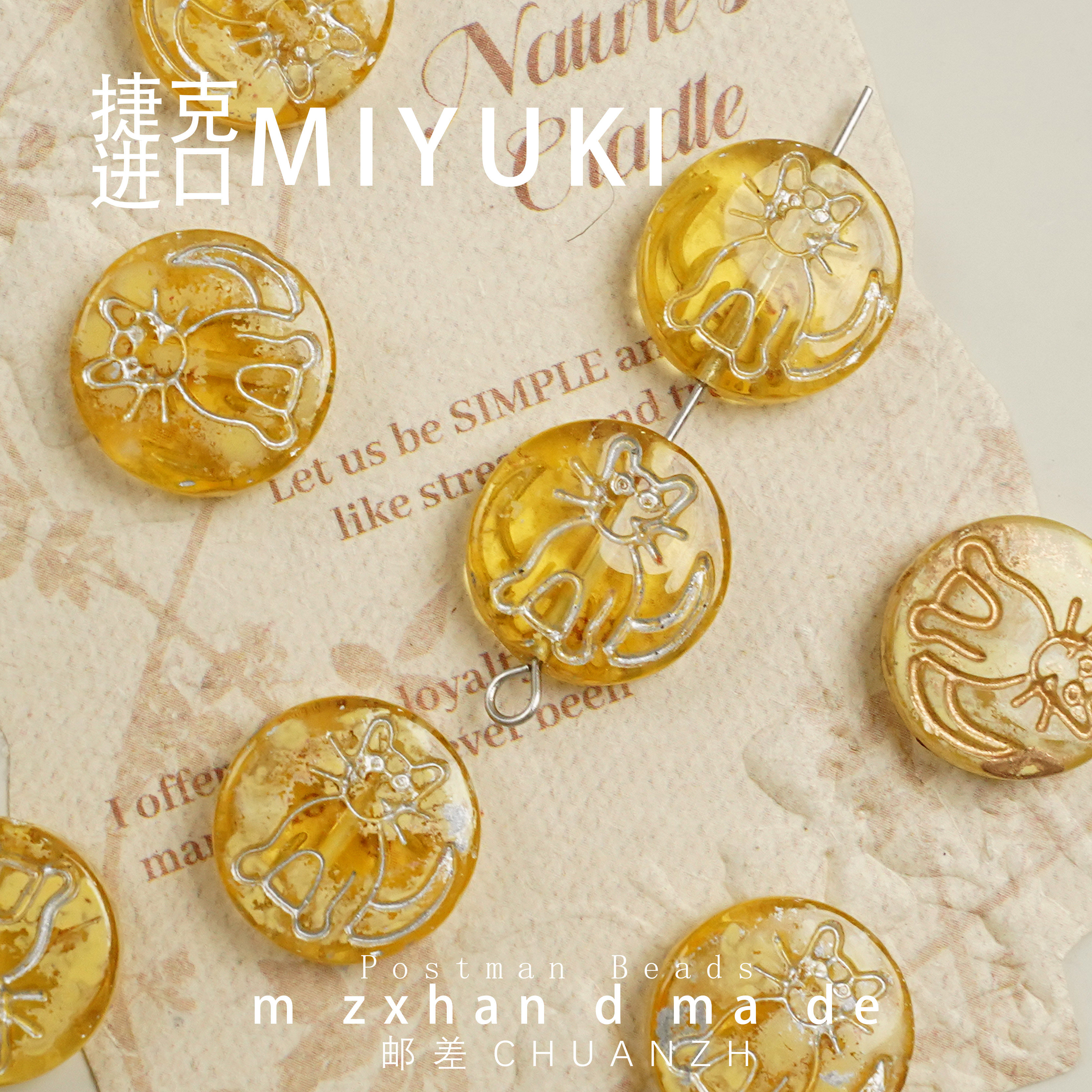 📚 14mm布拉格小猫圆饼捷克琉璃通孔配件diy手工串珠饰品材料圆牌