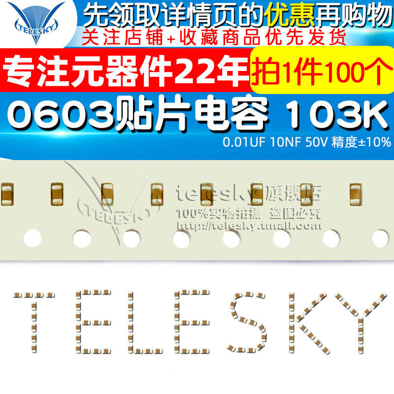📚 0603贴片电容 103K 0.01UF 10NF 50V 精度±10% 电容器 100个