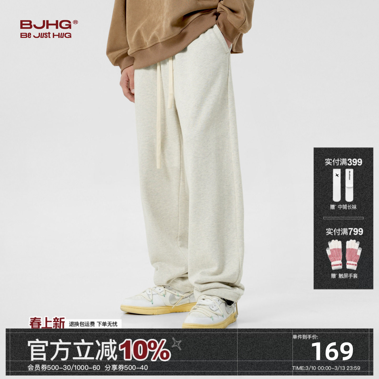 📚 BJHG不计后果美式卫裤子男款冬季潮牌灰色运动纯棉直筒休闲长裤女