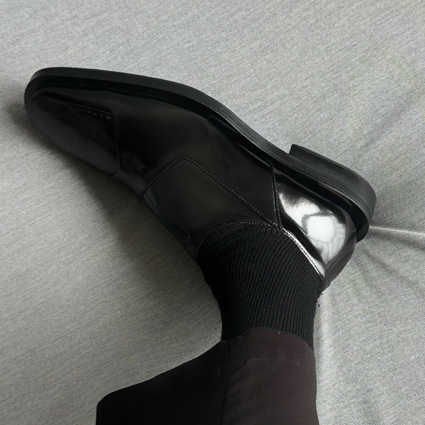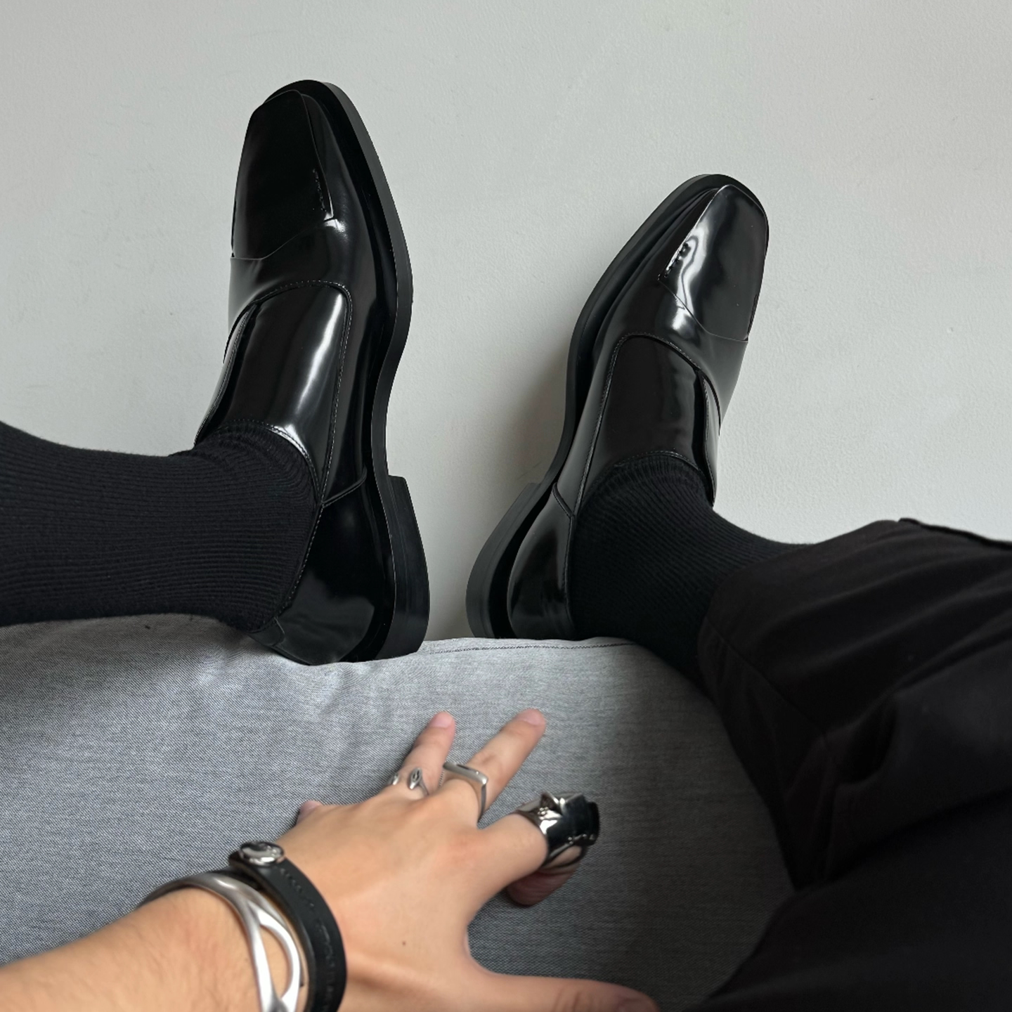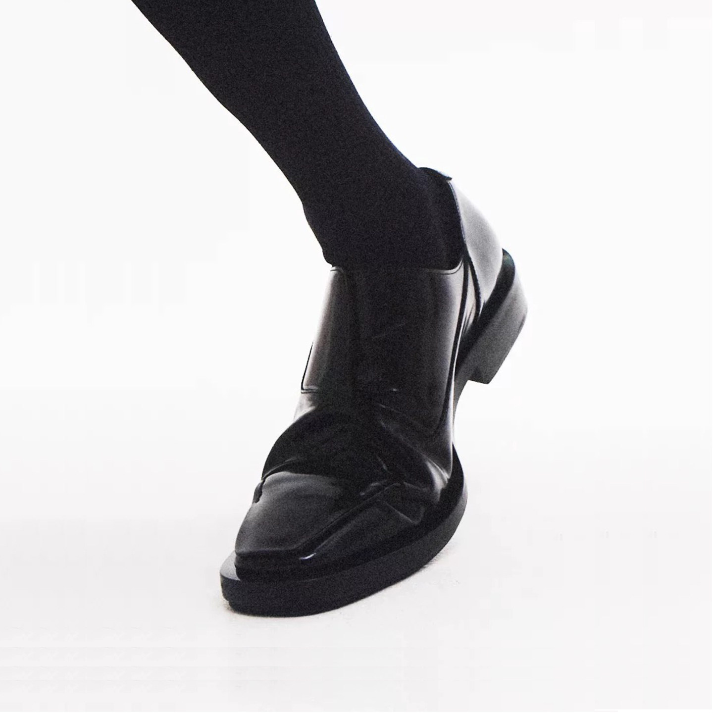📚 Duiisko 亮面牛皮结构翻片不对称裁片休闲乐福鞋 尖方头德比皮鞋