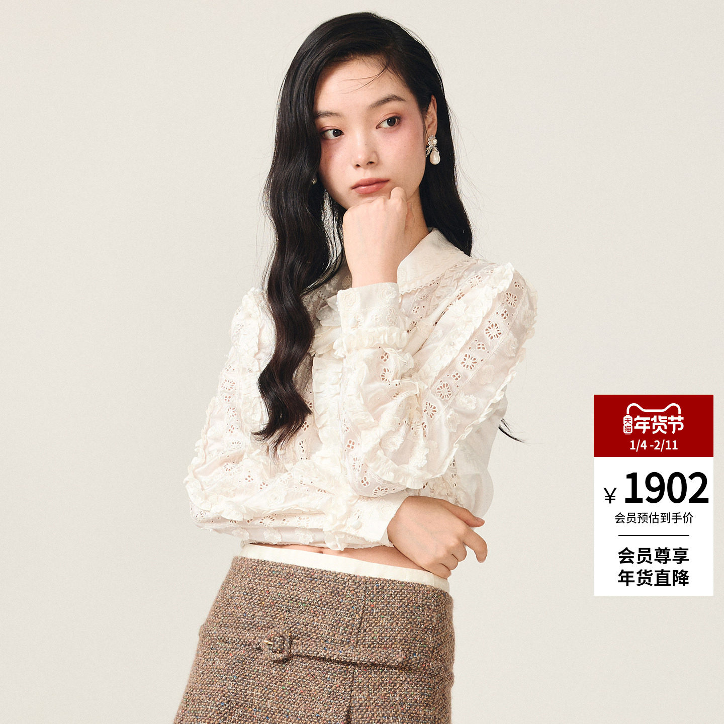 📚 lefame拉飞姆2025冬季新款时尚法式洋气千金马德拉刺绣上衣内搭女