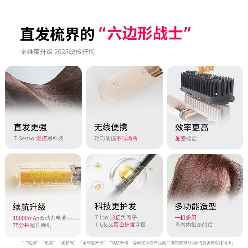 📚 TYMO第5代无线直发梳便携夹板负离子不伤发防烫高颅顶造型梳礼物