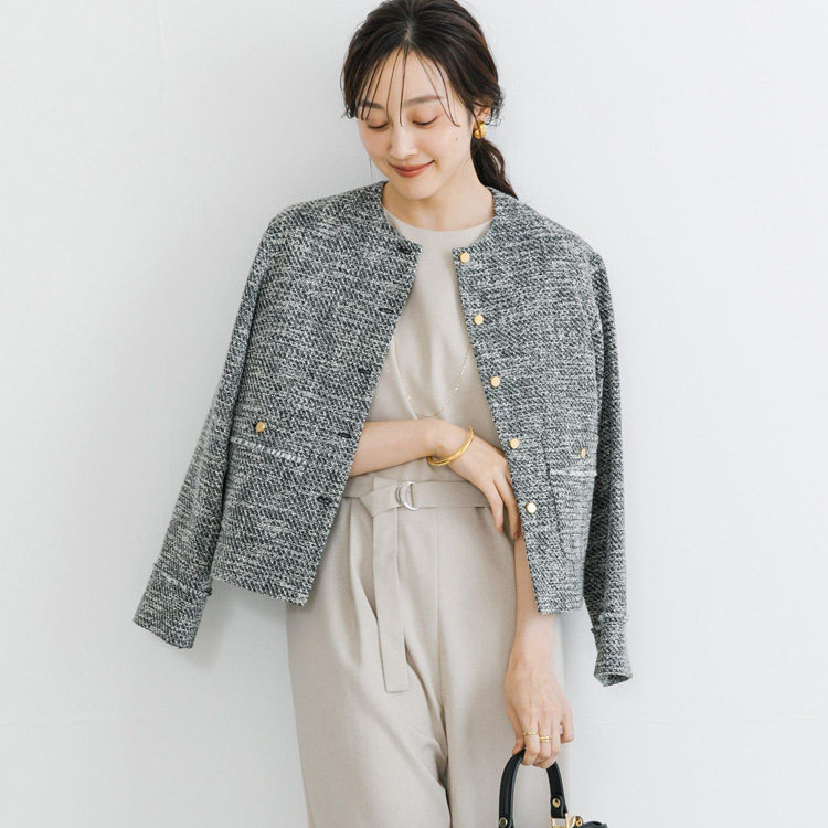 📚 URB@N RESEARCH 厚实粗花呢编织 圆领 简洁小香风 金扣 短外套