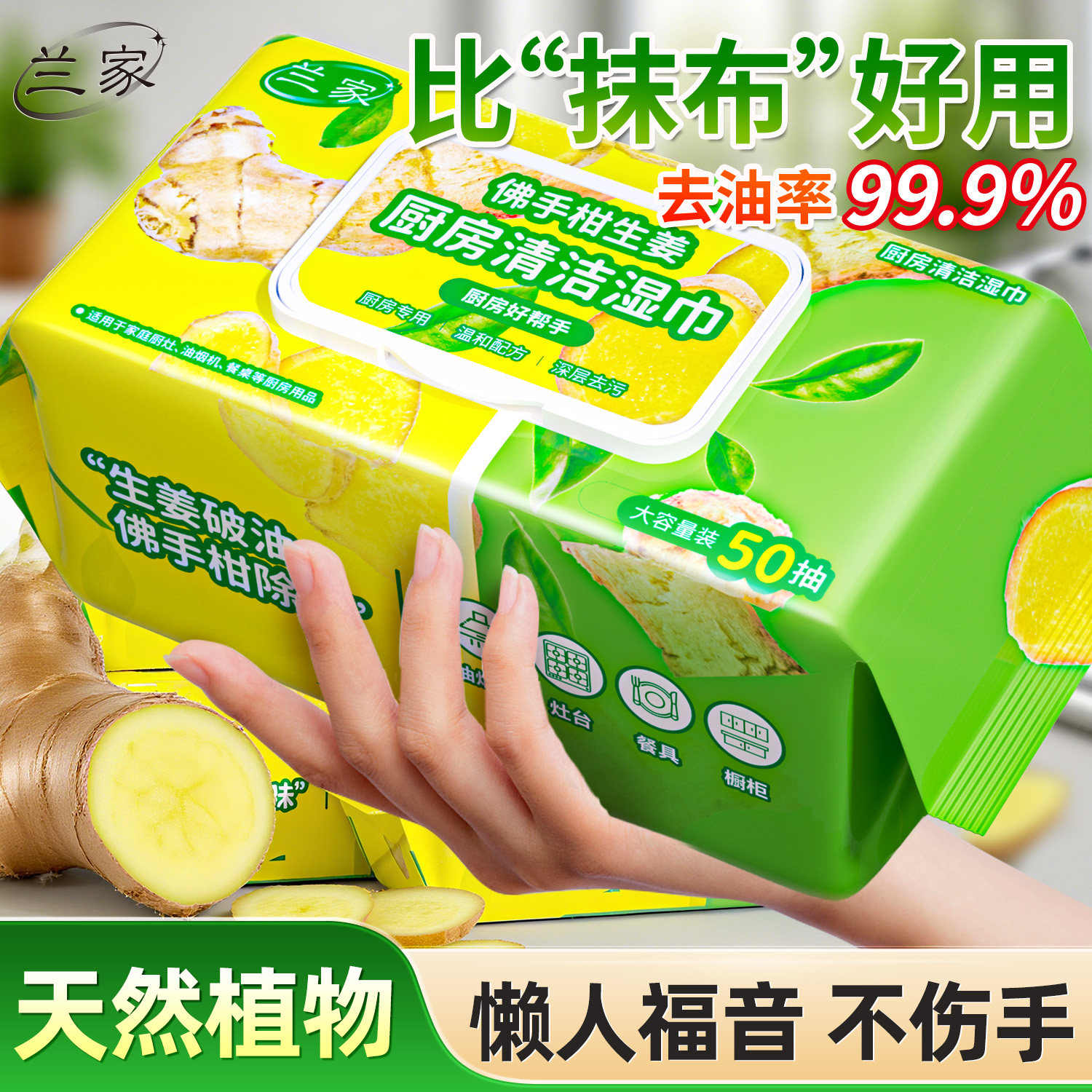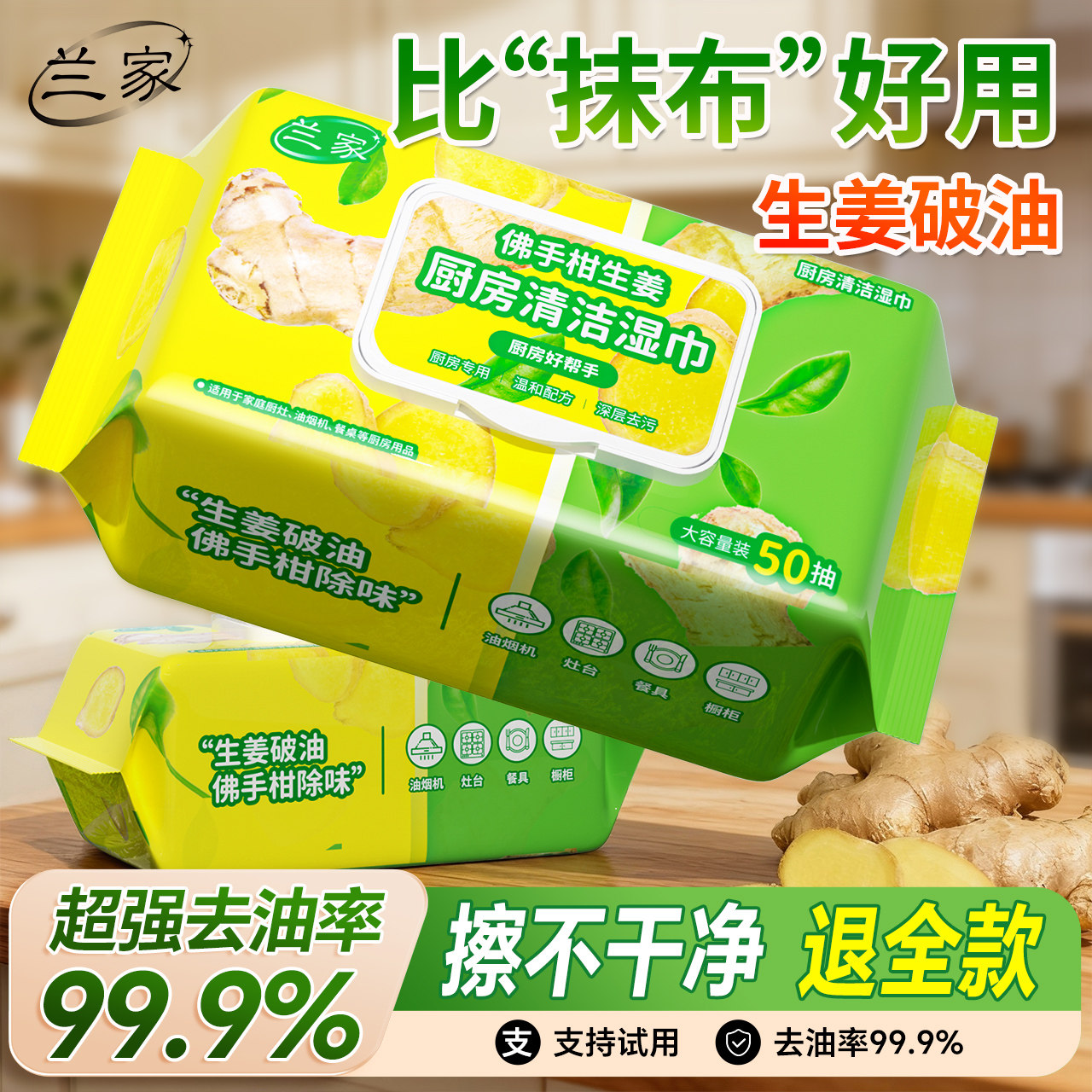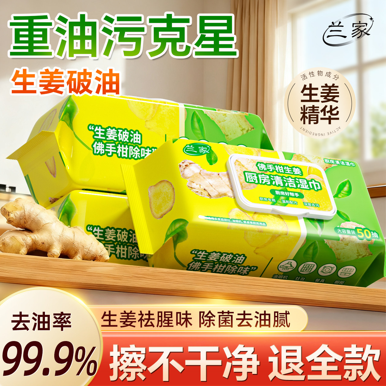 📚 兰家厨房湿纸巾强力去油去污除味家用加大加厚湿巾清洁冰箱油烟机