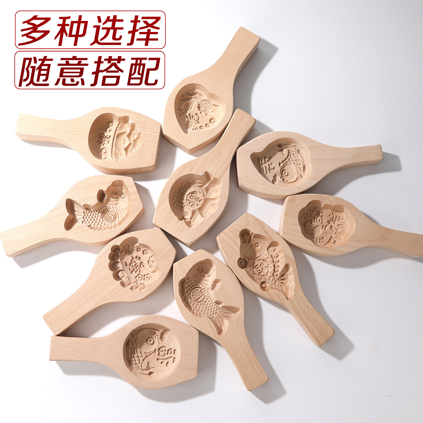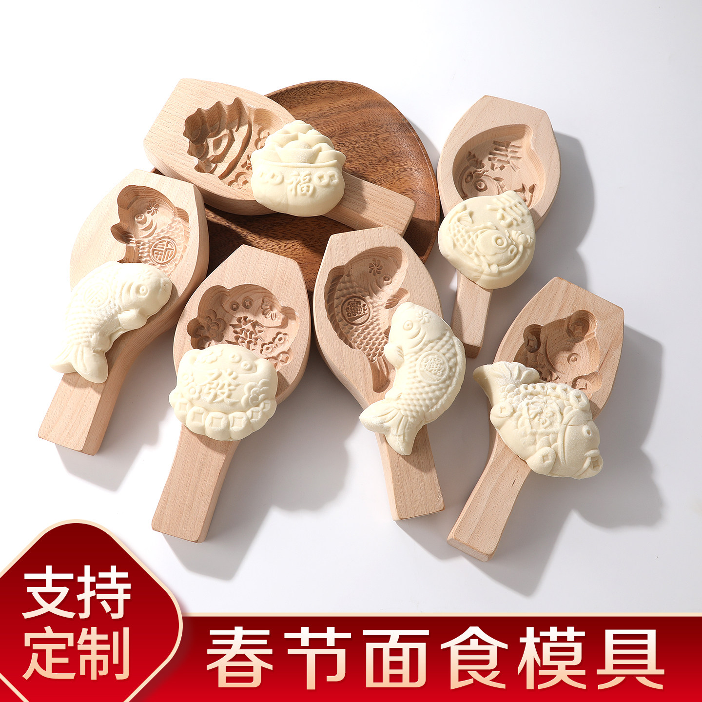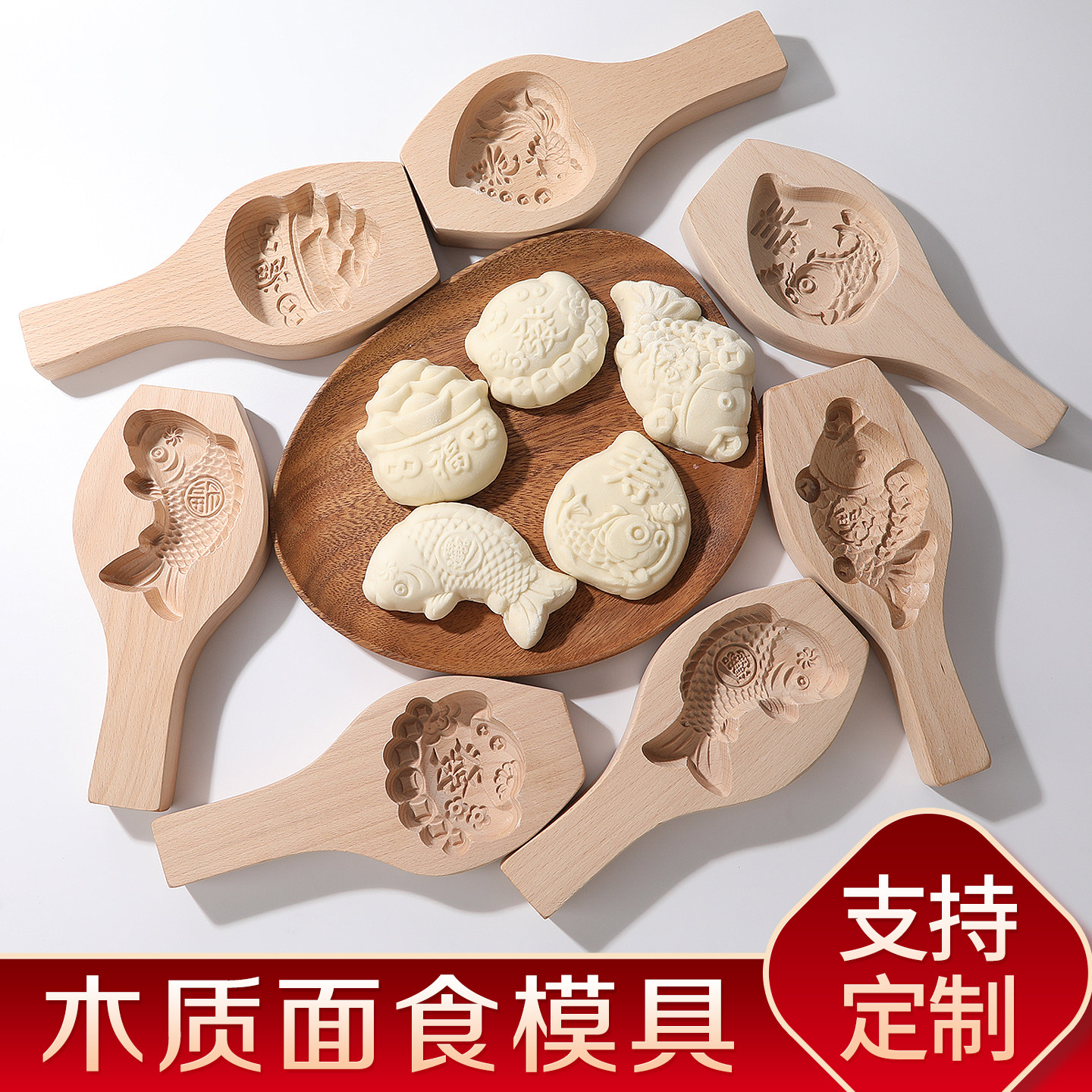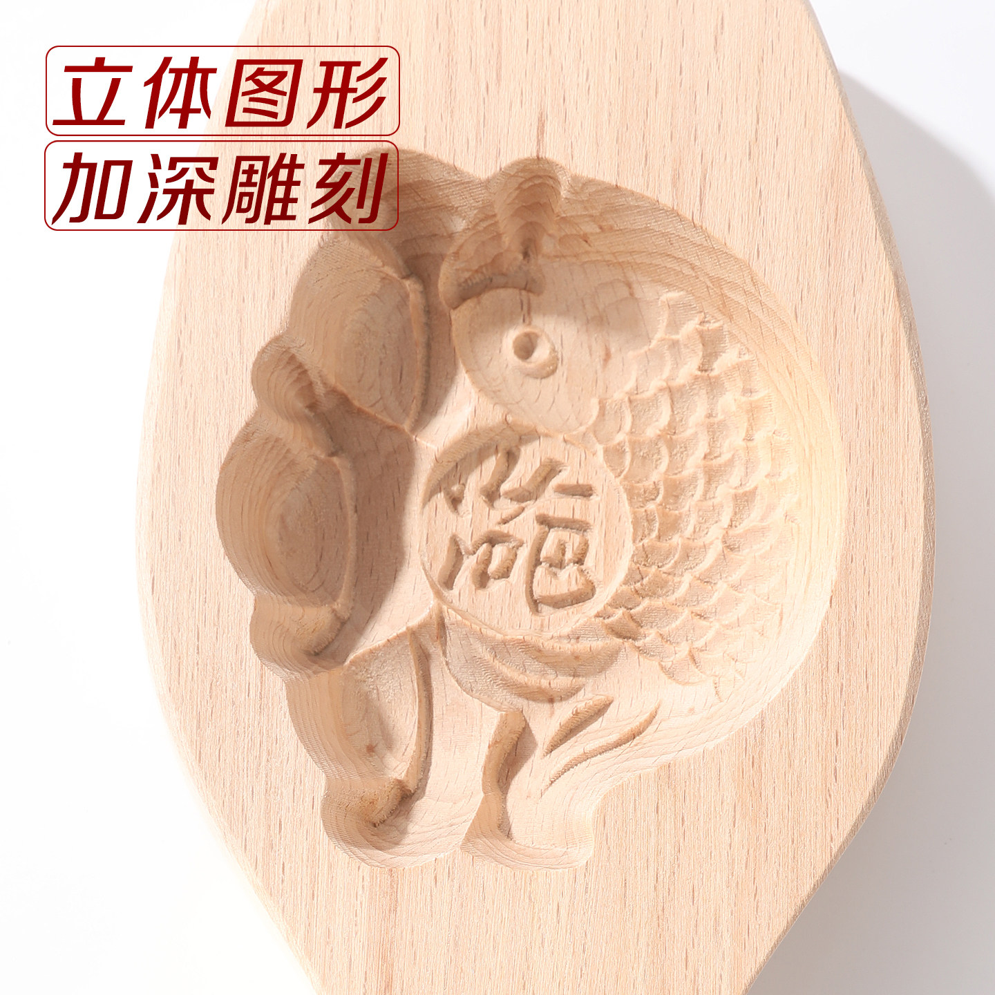 📚 铁狮子手作馒头面鱼模具福袋胶东手工花饽饽模型家用商用木质卡字
