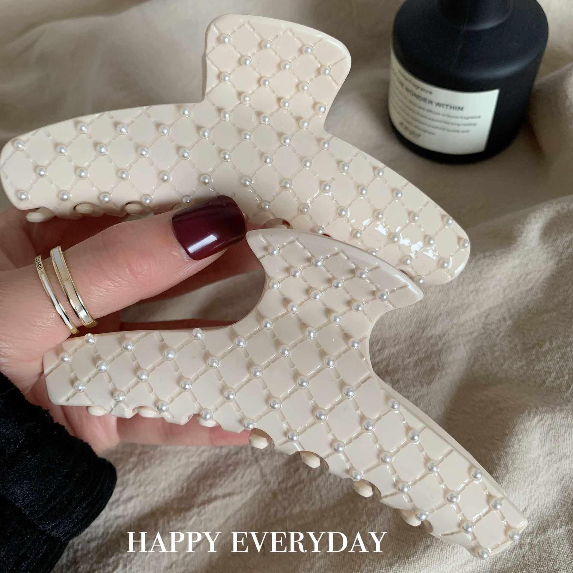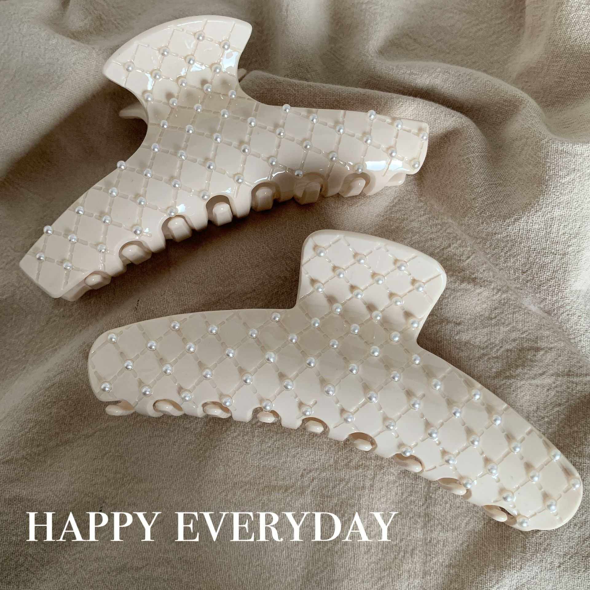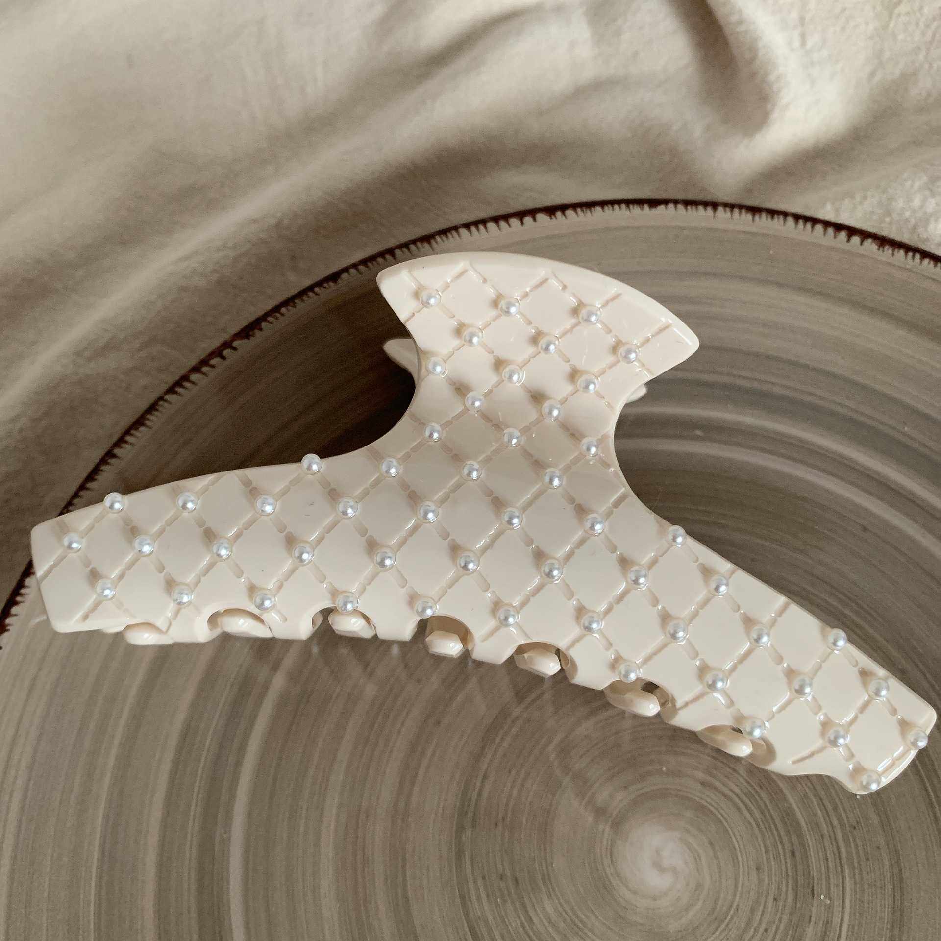📚 韩版醋酸发夹奶白时髦菱格珍珠抓夹法式优雅气质百搭小香鲨鱼夹女