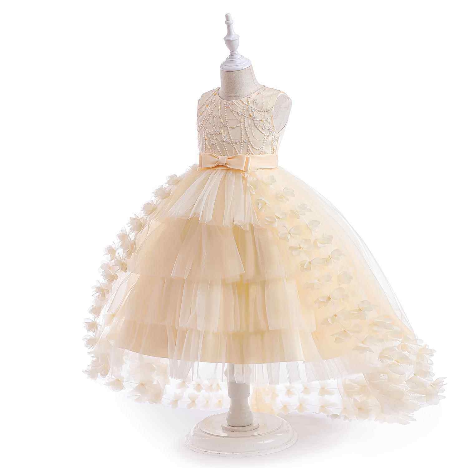 📚 亚马逊新款儿童礼服拖尾女童花童婚礼纱裙连衣裙女童礼服公主裙定