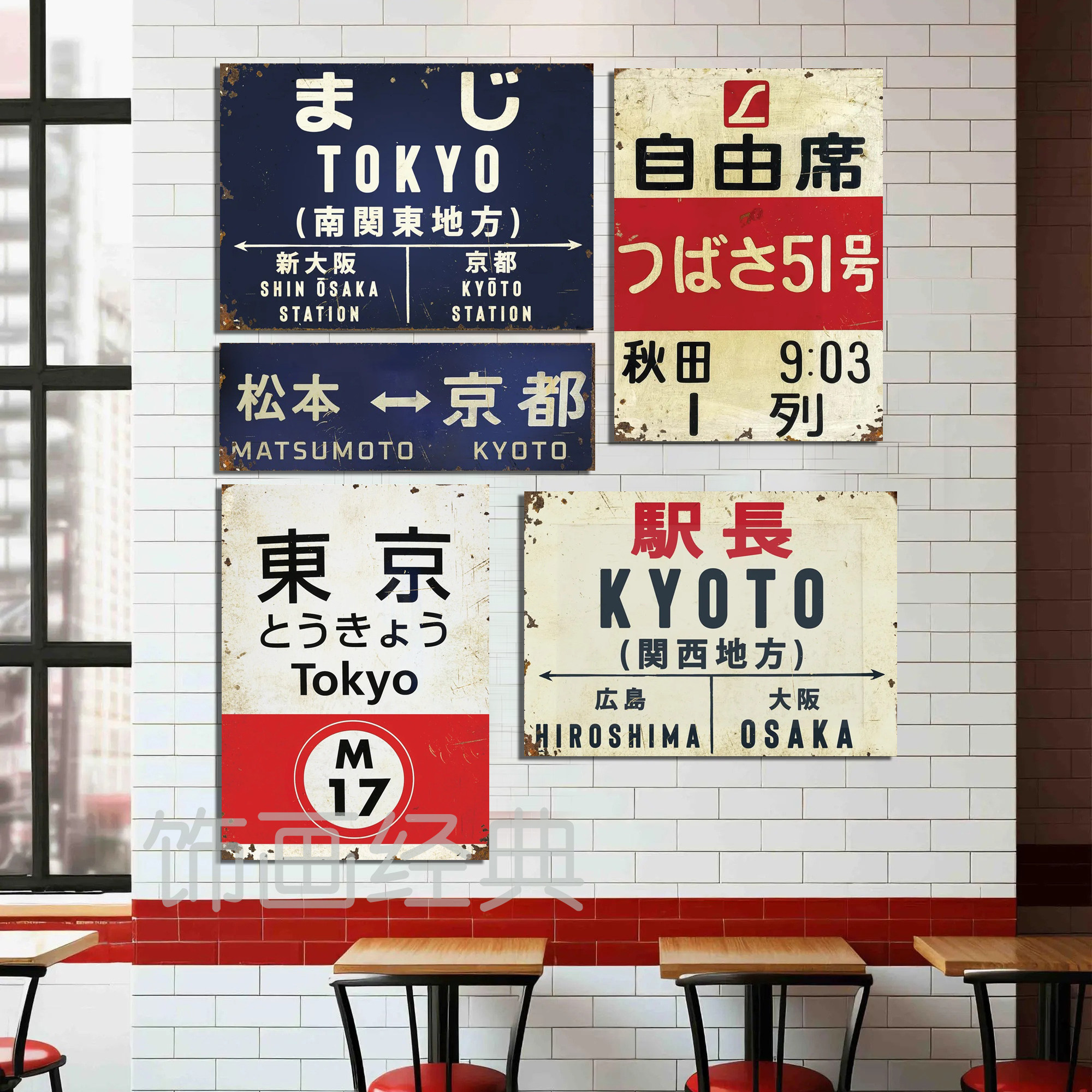 📚 酒吧咖啡馆复古怀旧装饰画挂画站牌电车vintage无框画日本车站