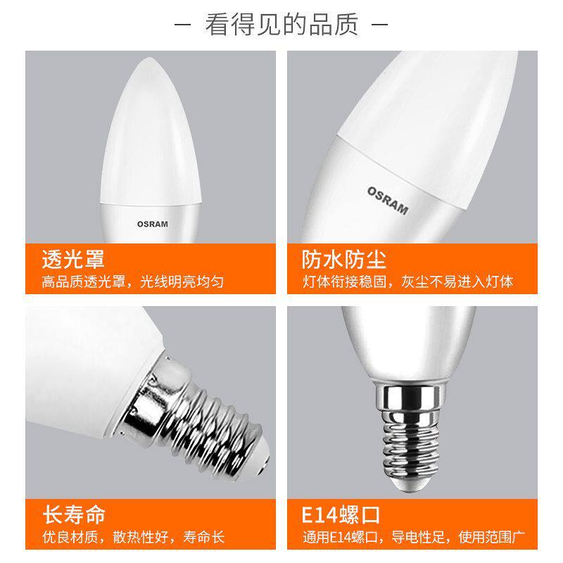 📚 欧司朗led灯泡e14小螺口室内节能餐厅吊灯超亮光源白色尖泡蜡烛泡