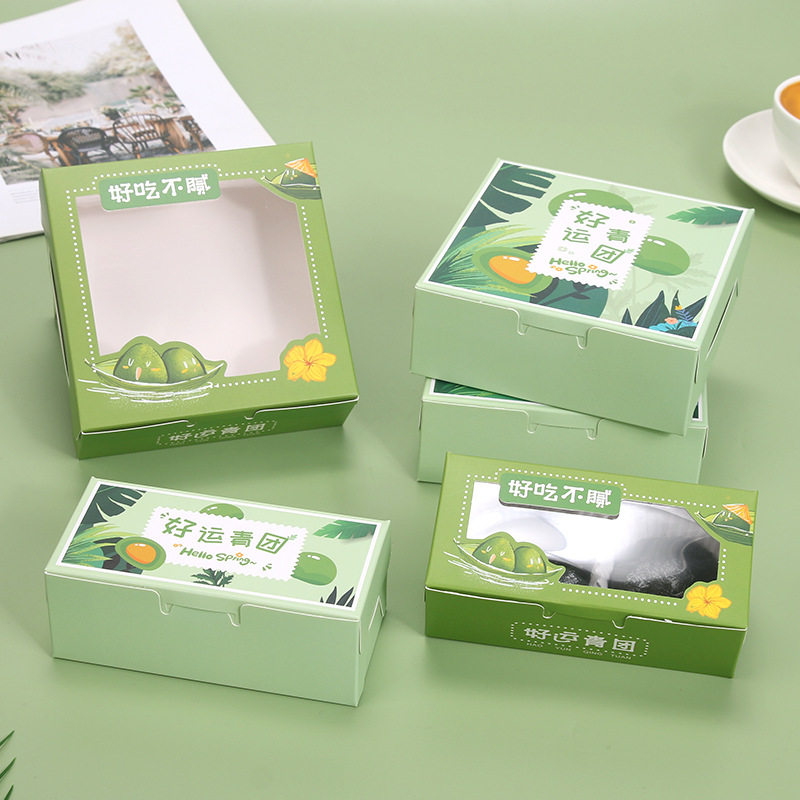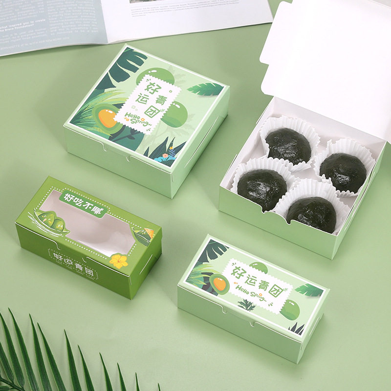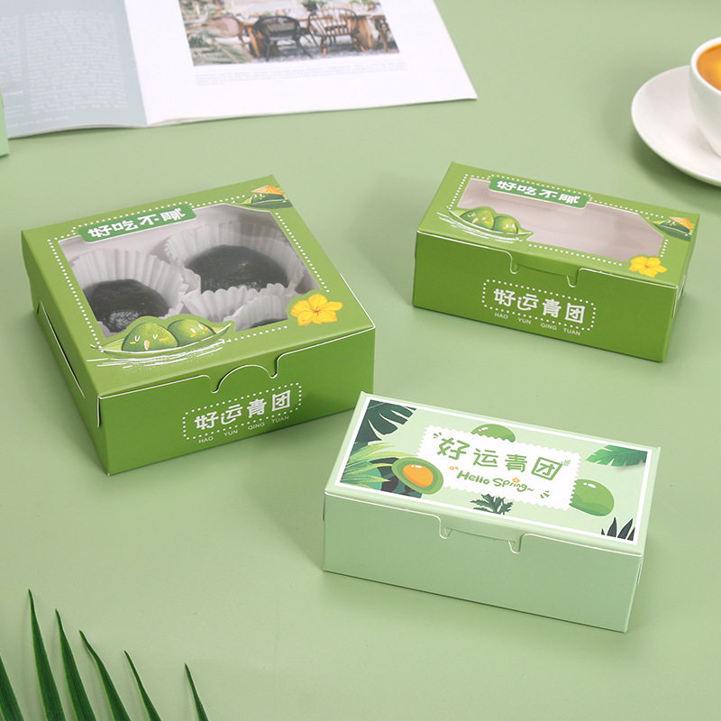 📚 青团包装盒2/4粒装清明粿透明开窗艾草糯米果子盒翻盖折叠打包盒