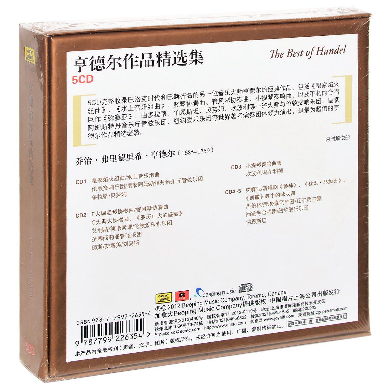 📚 正版 亨德尔作品精选集 5CD 皇家焰火音乐 / 水上音乐 古典车载CD