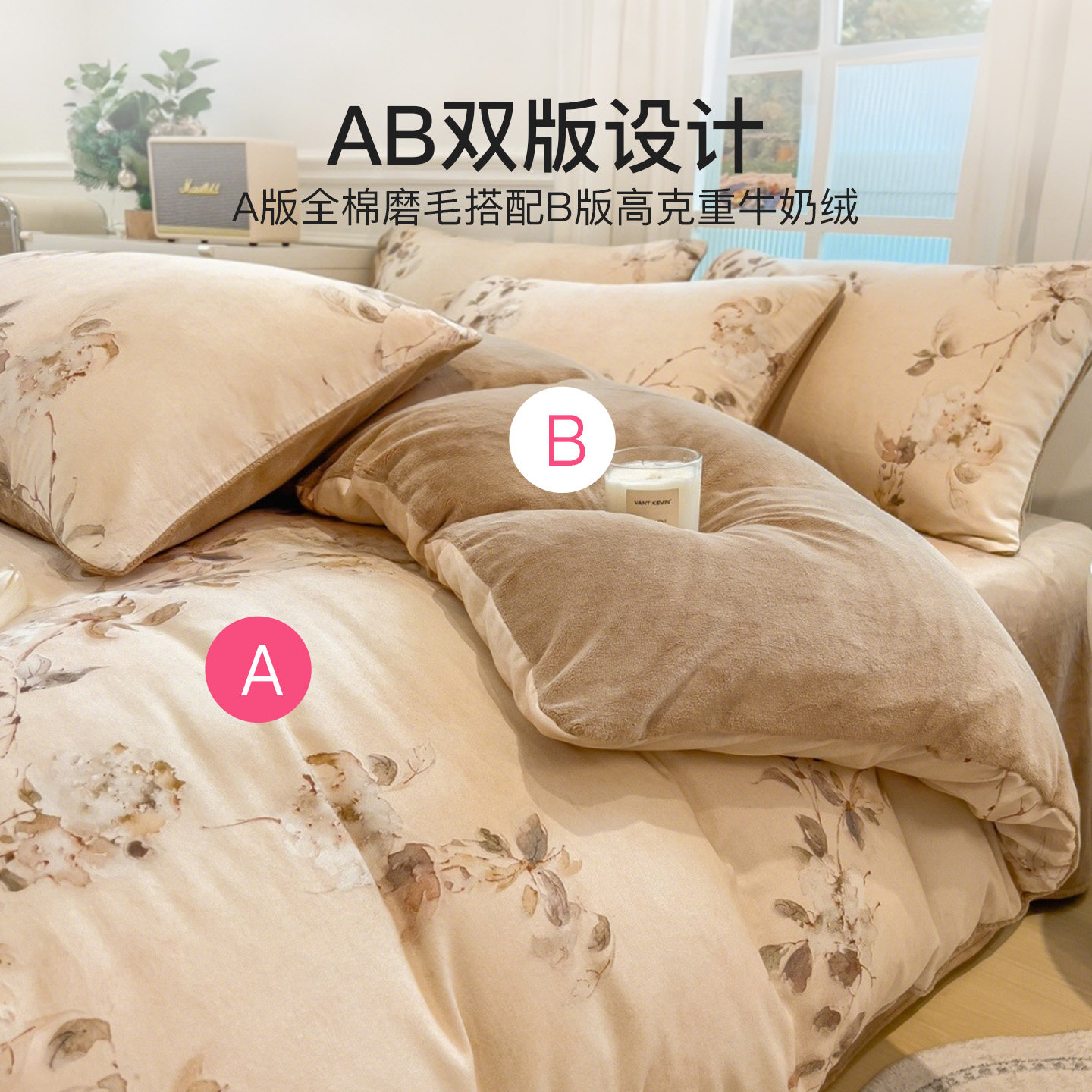 📚 洁丽雅A全棉磨毛B牛奶绒床上四件套冬季珊瑚绒床单纯棉单面绒加绒