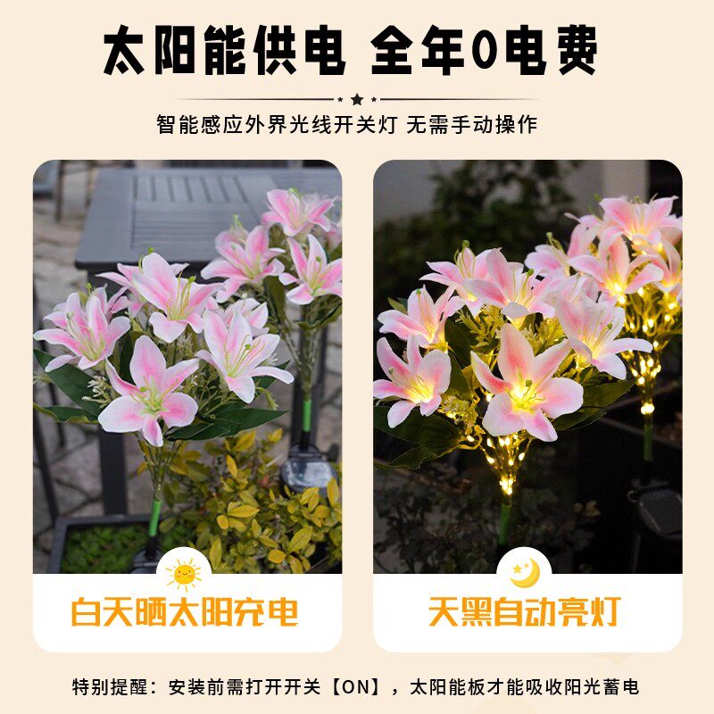 💥太阳能百合花灯!户外防水、别墅庭院首选🏡