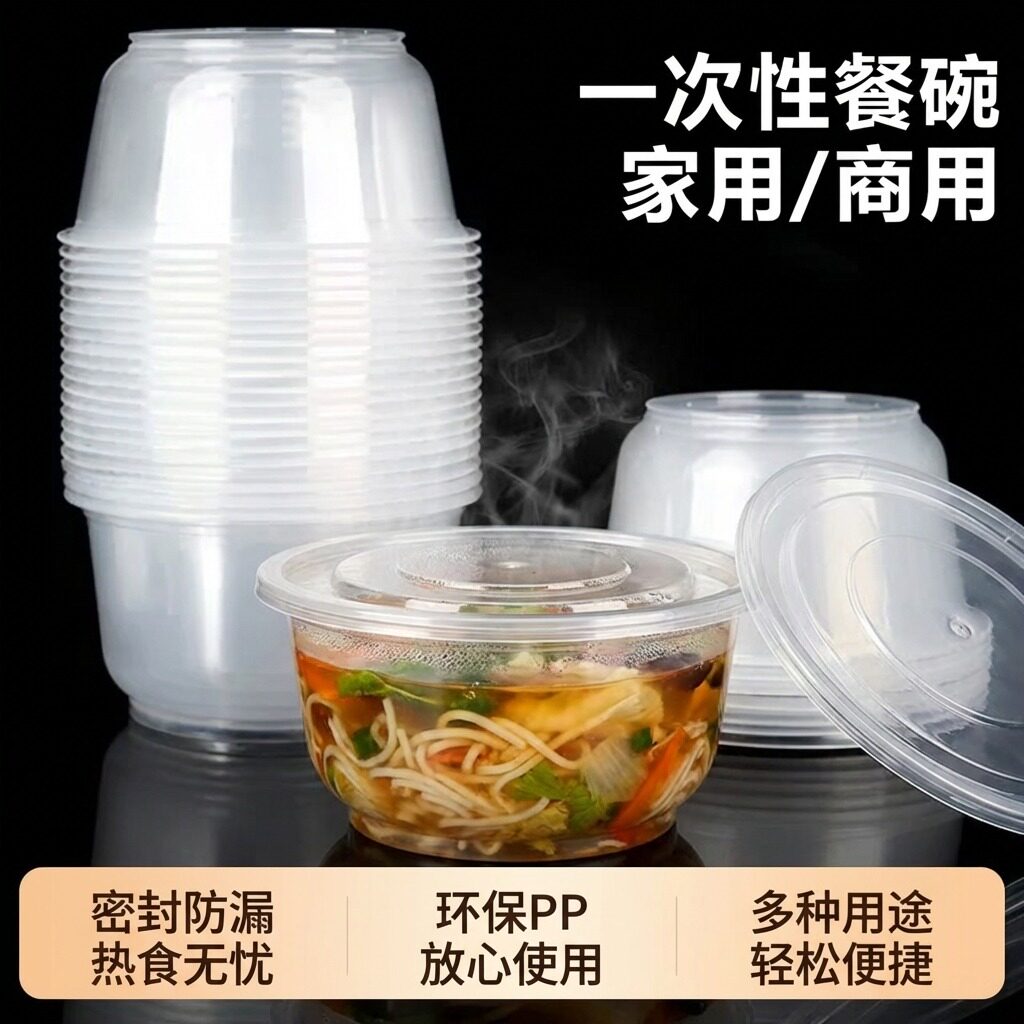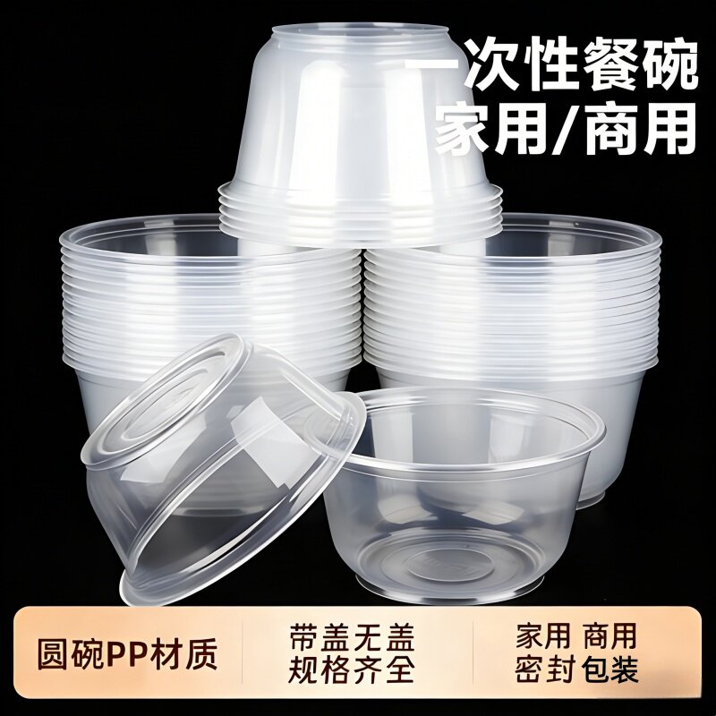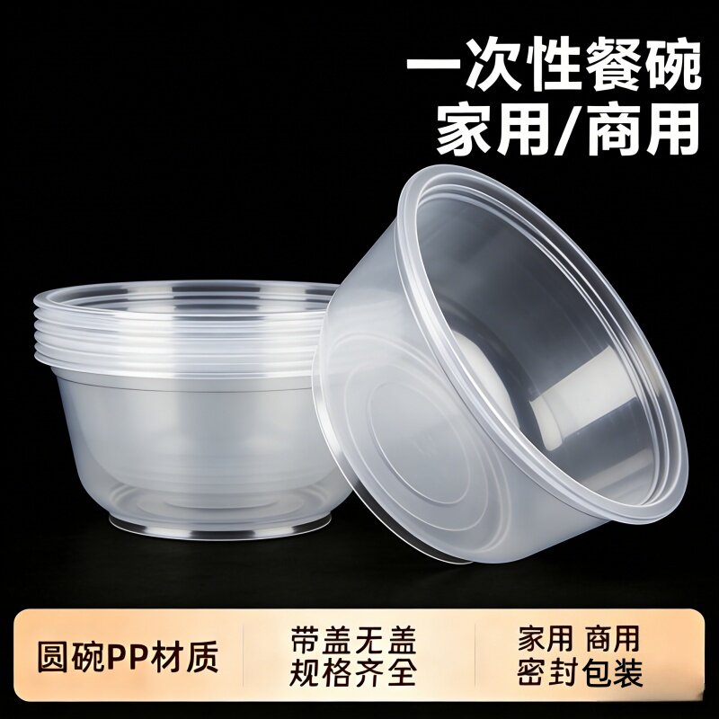 📚 一次性碗塑料碗高温耐热冰粉打包餐碗带盖加厚透明外卖餐盒食品级