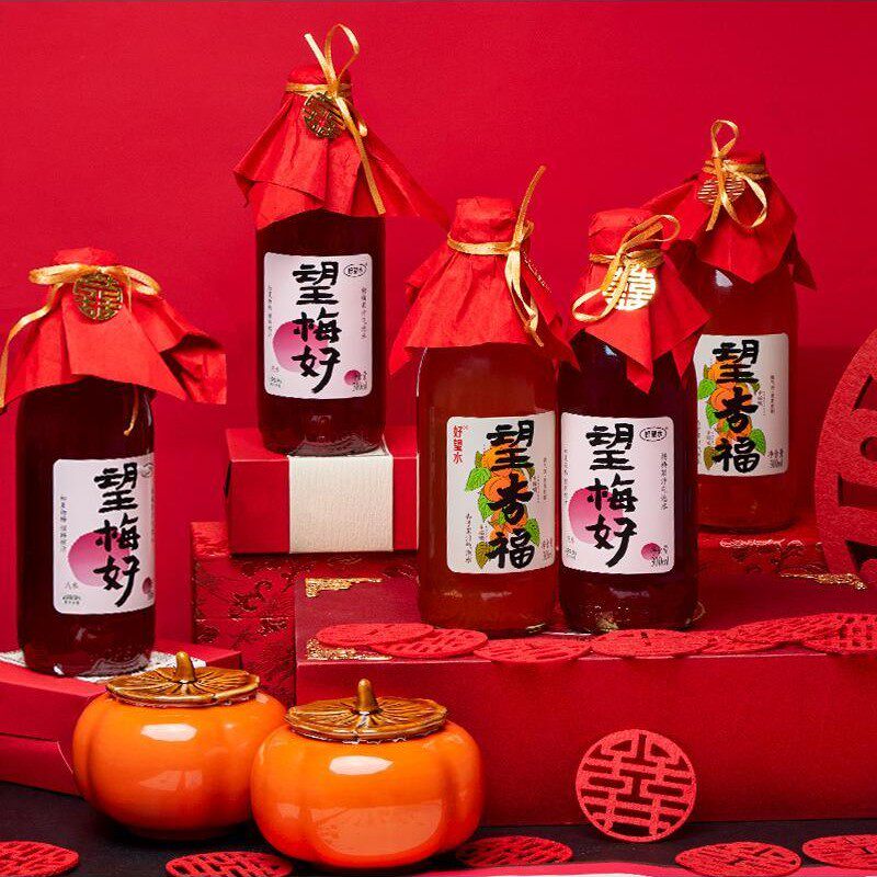 📚 望梅好杏福订婚宴布置装饰全套桌面小摆件摆台饮料梅子酒饮品定制