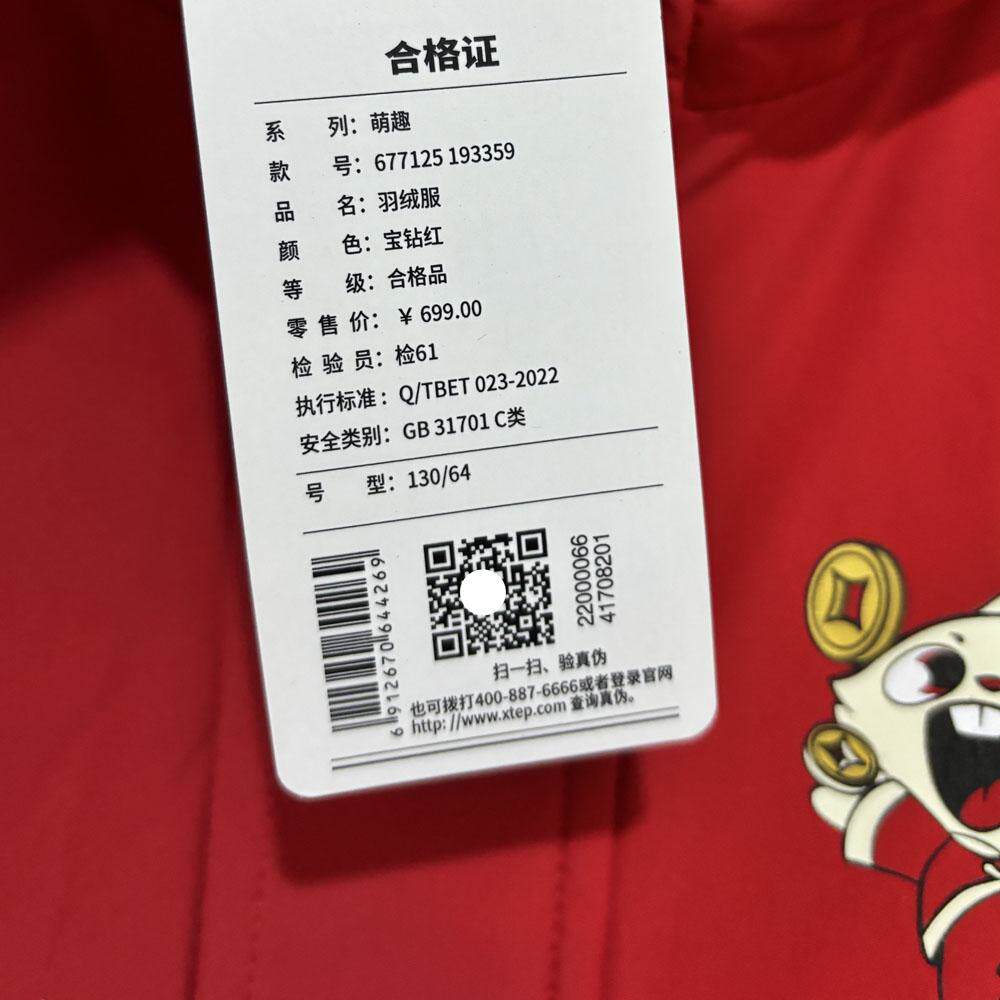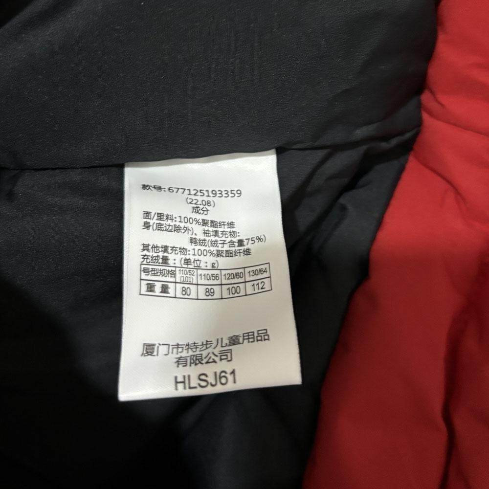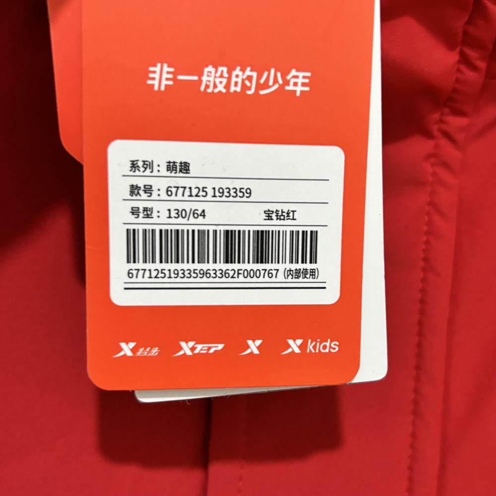 📚 特步儿童正品冬季休闲保暧中国红外套男童连帽羽绒服677125193359