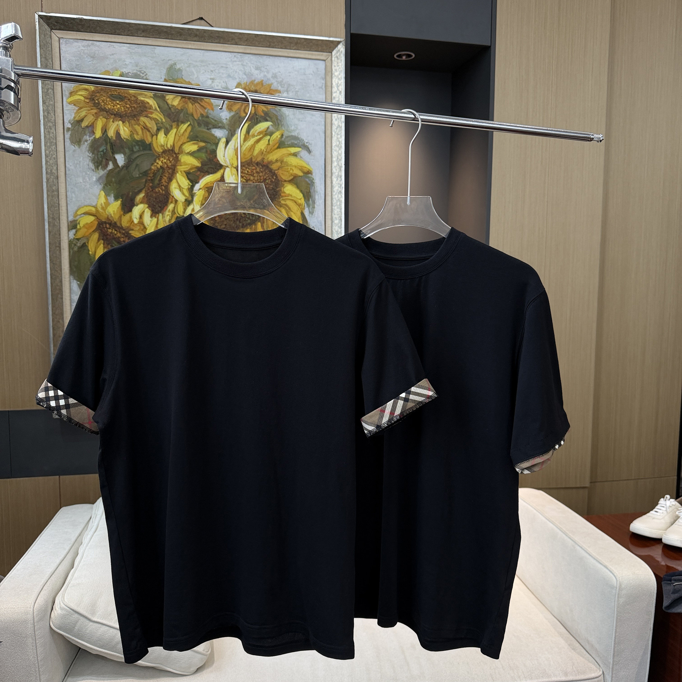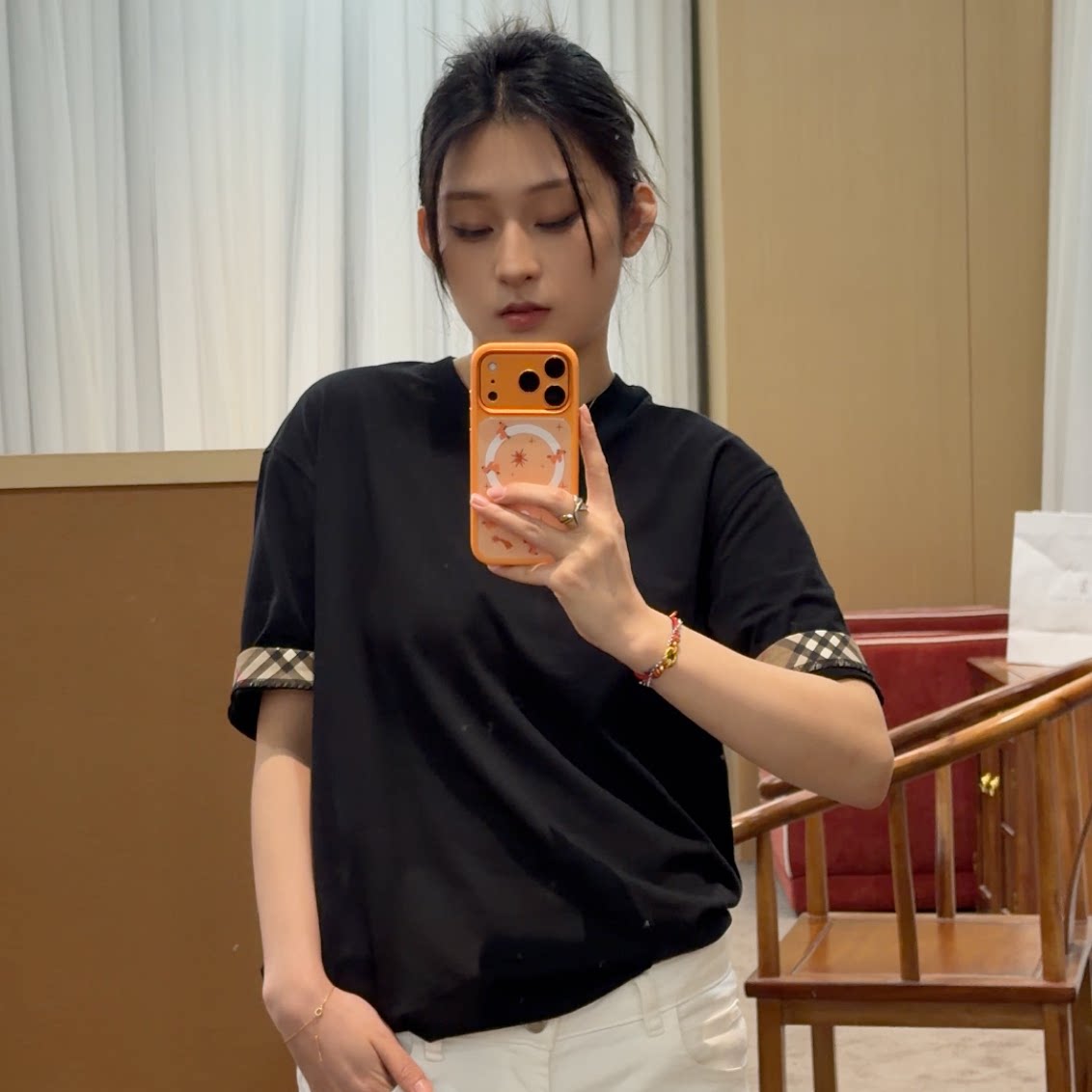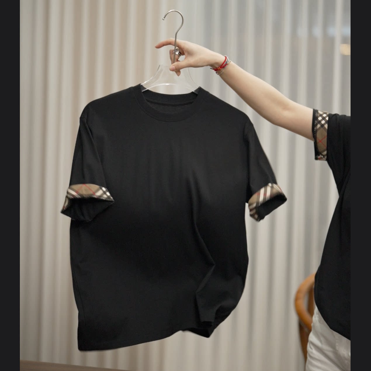 📚 SEASON MARK纯色袖子格纹拼接圆领短袖休闲百搭舒适亲肤男女同款