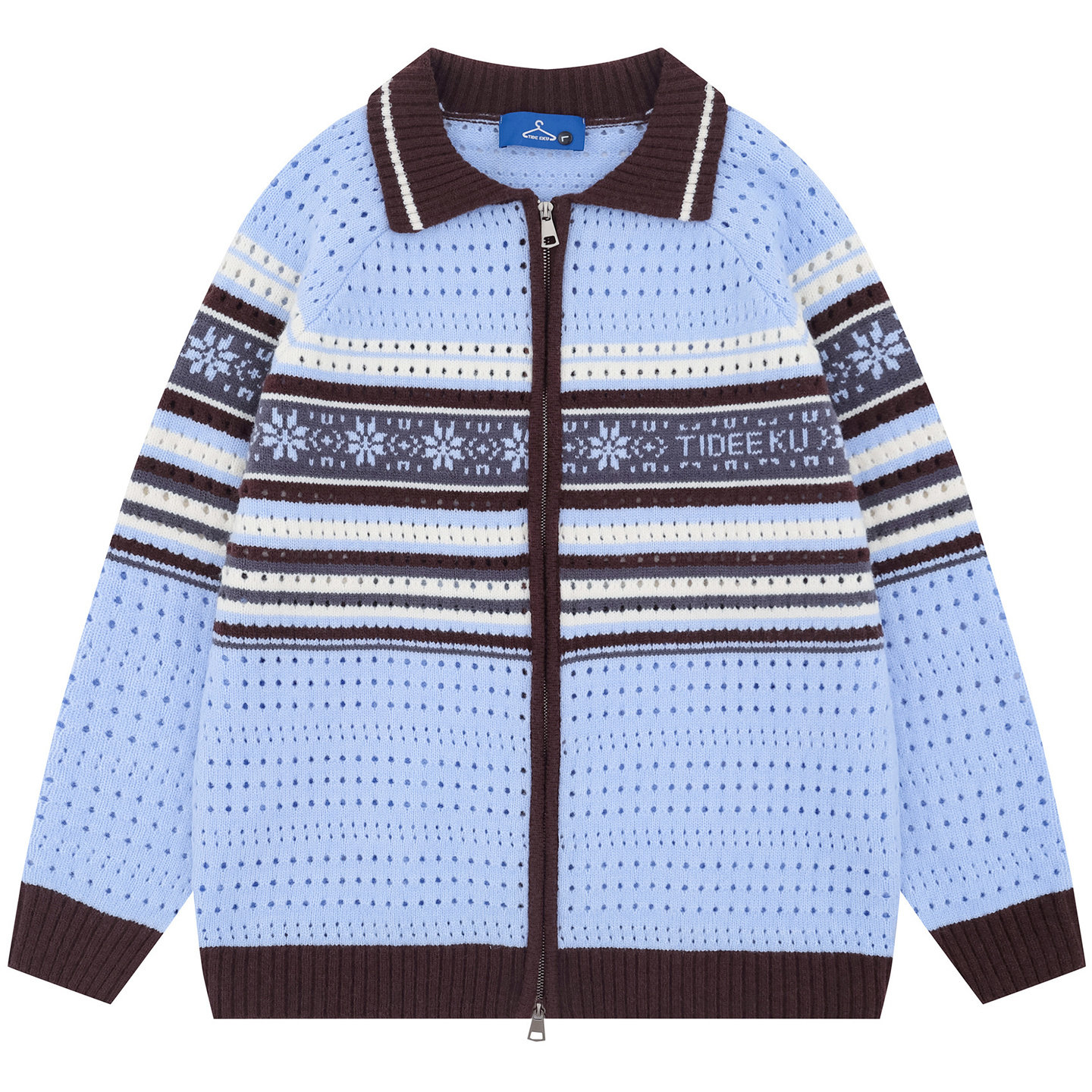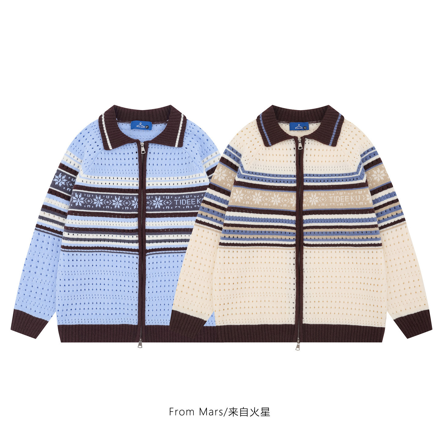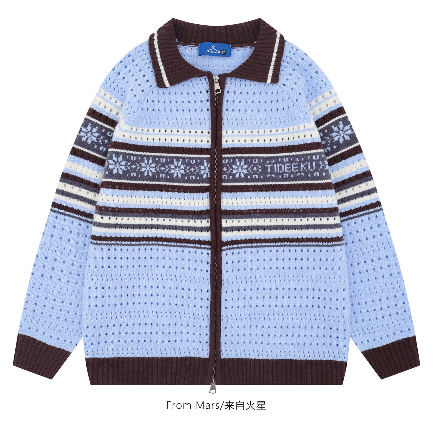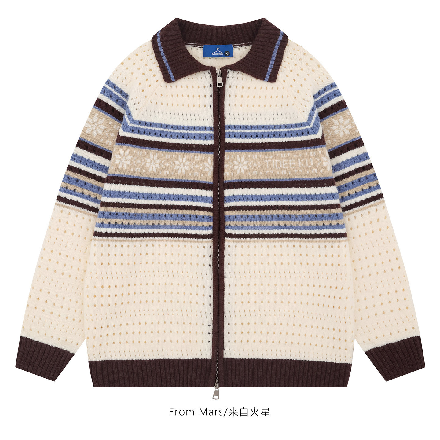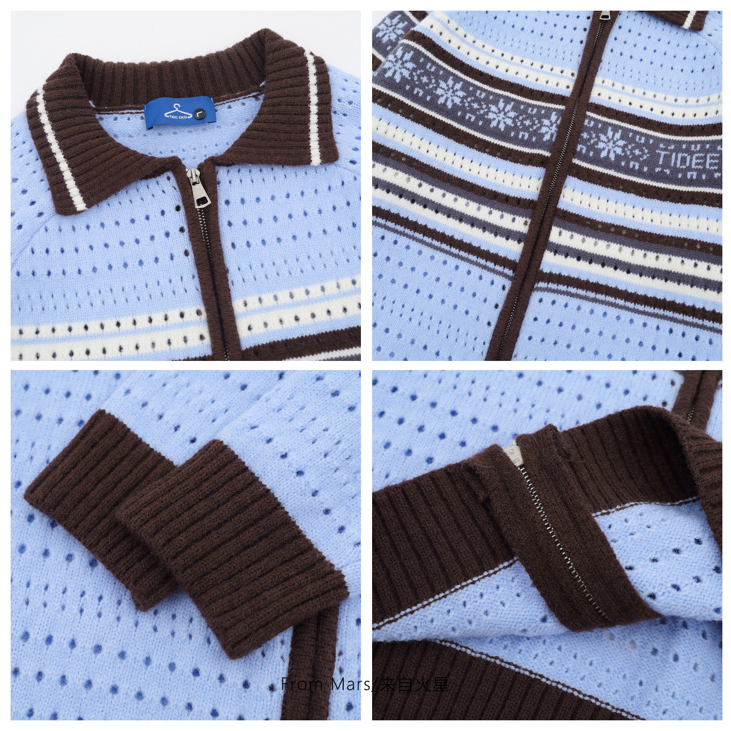 📚 From Mars 每个日子 美式条纹撞色镂空翻领宽松拉链针织衫毛衣BF