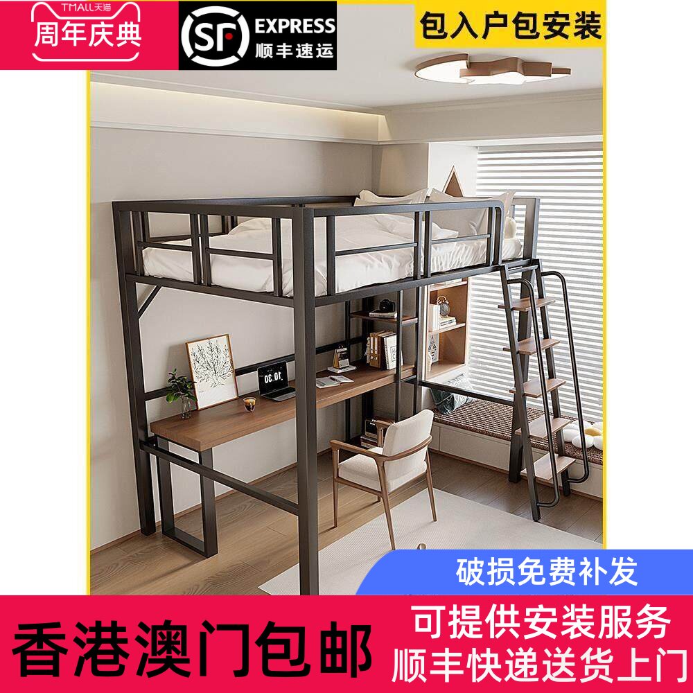 📚 【香港包】阁楼床复式二楼铁艺架高架床单上层上铺悬空床上床下