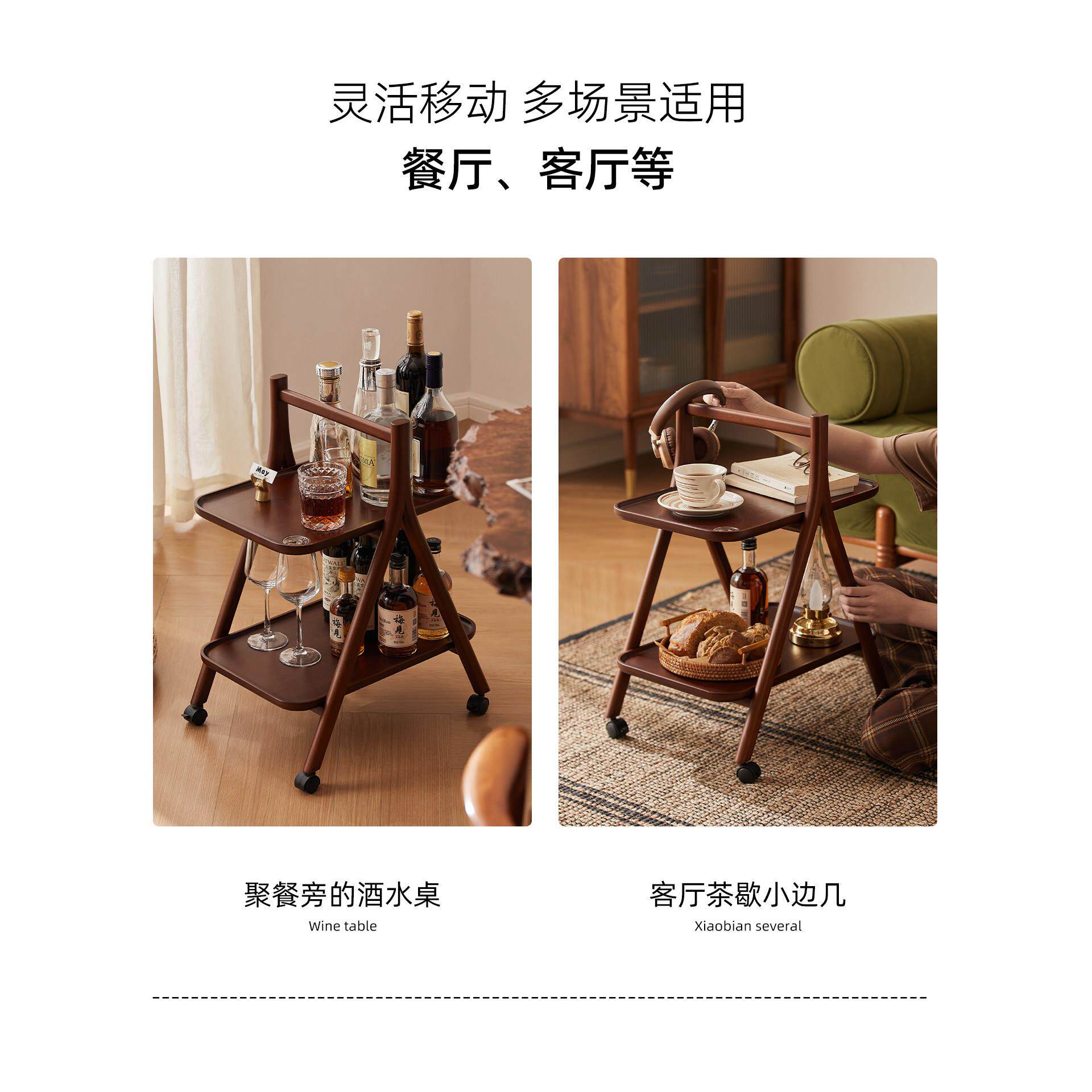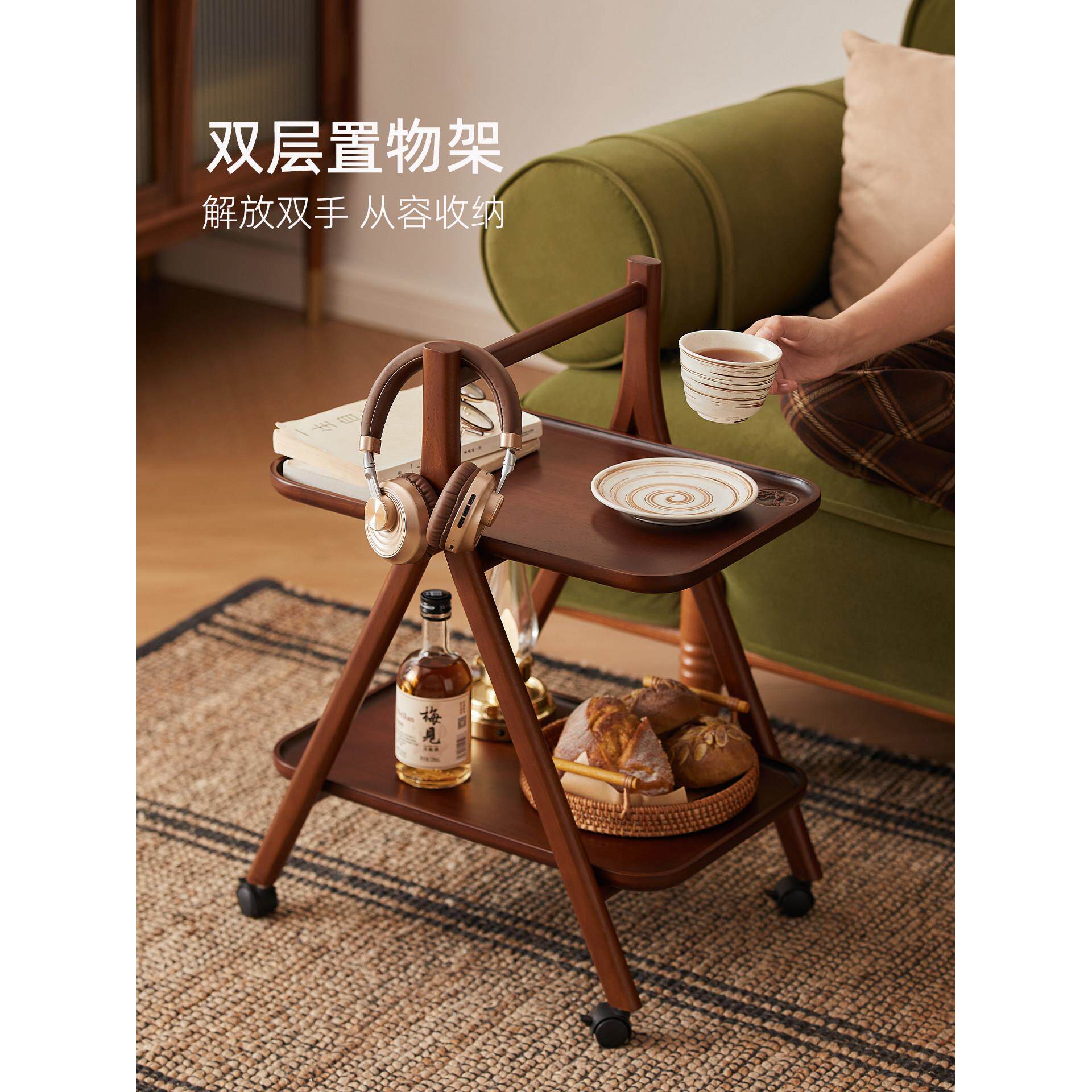 📚 零食小推车实木置物架分层架小型落地门后夹缝收纳床边收纳架