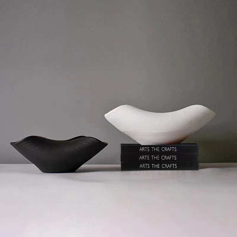 📚 现代极简样板房客厅创意贝壳花器摆件白色果盘干花插花软装工艺品