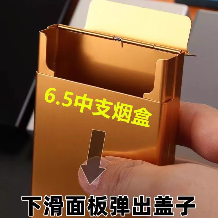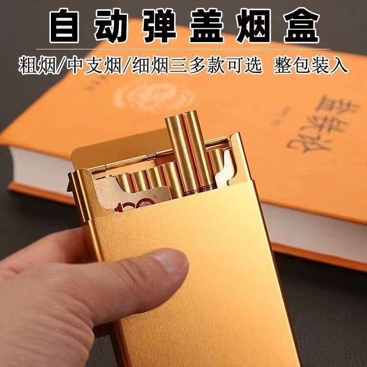 📚 超薄铝合金自动滑盖细支烟盒男粗中支便携20支整包装高档自卷烟盒