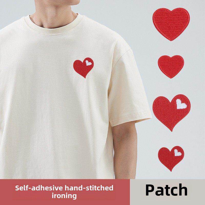 📚 羽绒服的补丁贴可手缝刺绣爱心布贴红色自粘熨烫补洞贴可爱装饰贴