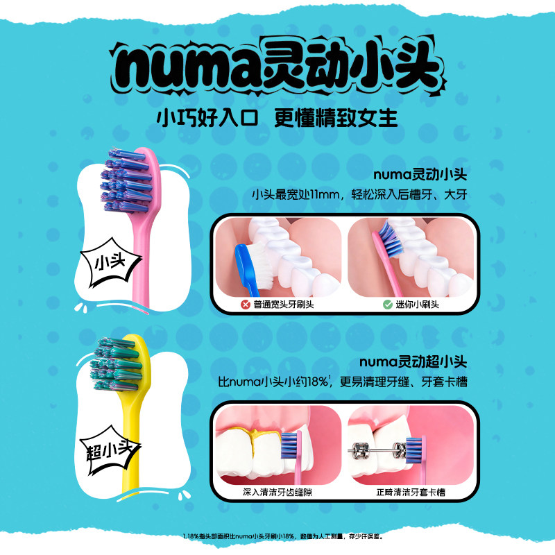 📚 【新品首发】惠百施numa灵动小头深入牙缝清洁多巴胺软毛牙刷成人