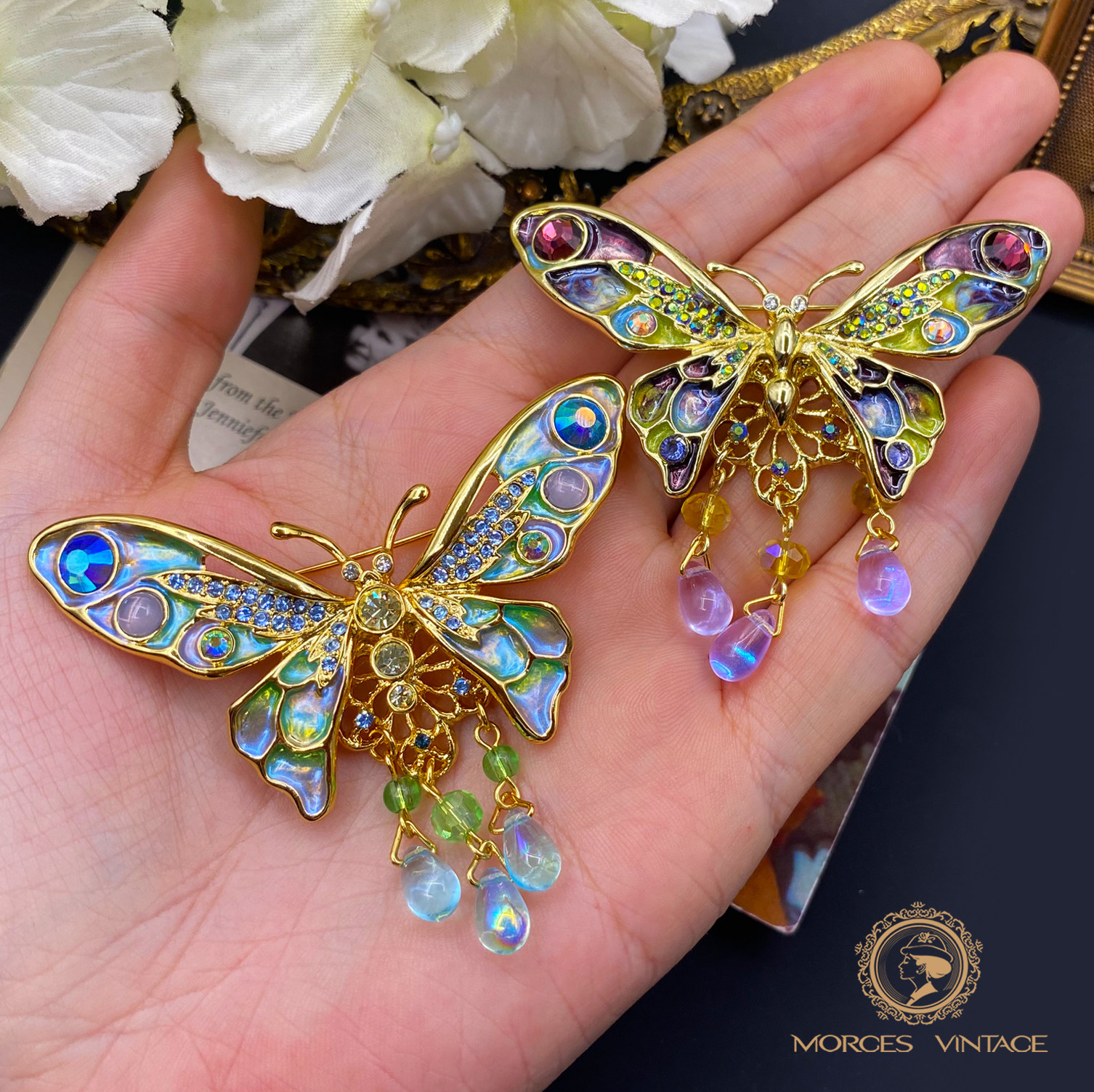 📚 Kirks Folly流光溢彩水滴珐琅蝴蝶胸针