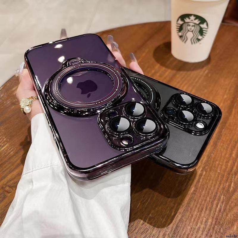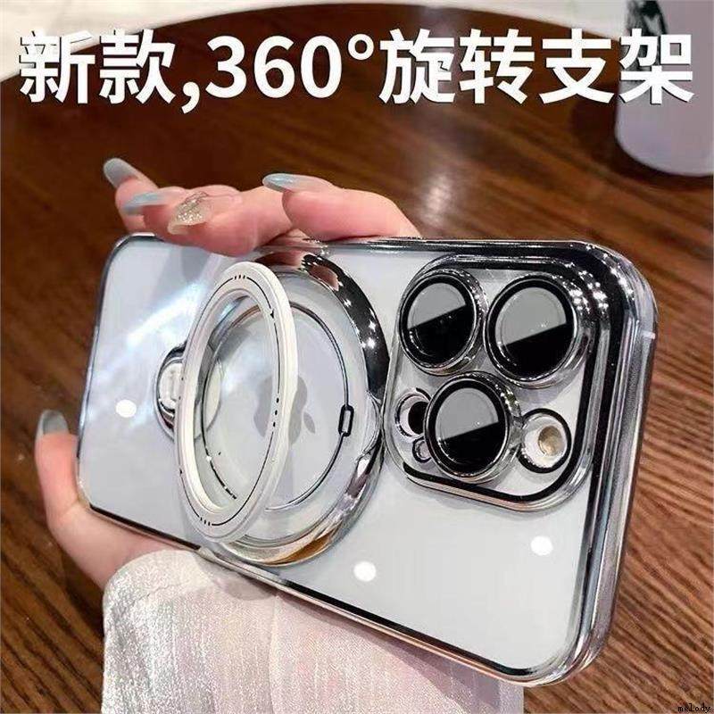 📚 适用于iPhone16promax magsafe case苹果16plus iPhone 15 14 13 12 11 Clear Ring Cover透明旋转支架保护套