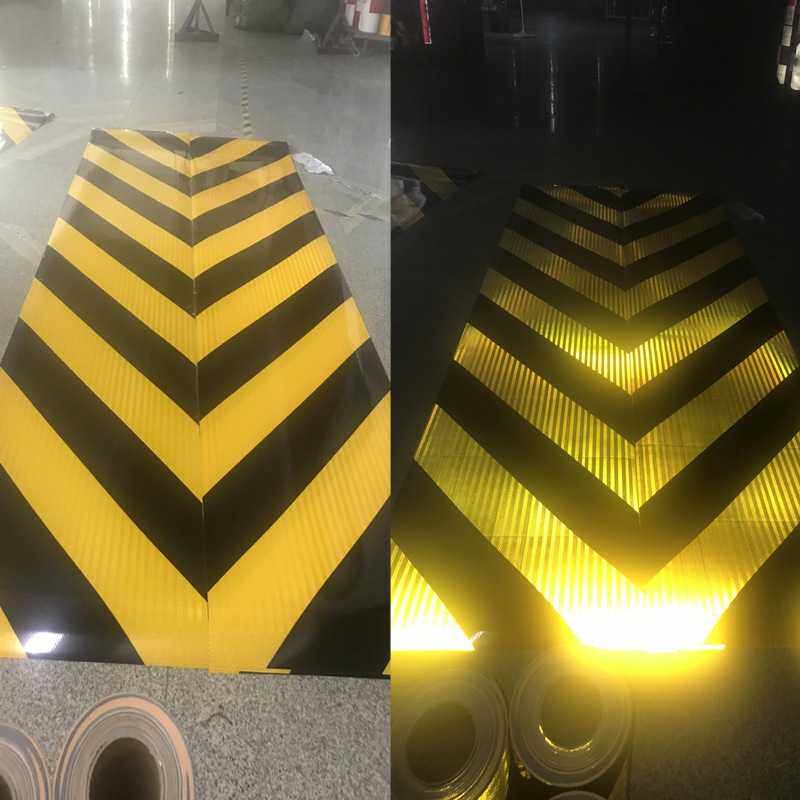 📚 铝背基黄黑斜纹反光膜隧道口黄黑立面标记桥墩护栏端头高速反光环