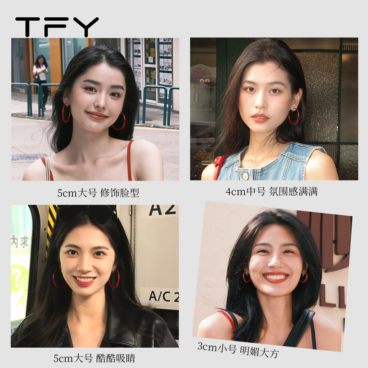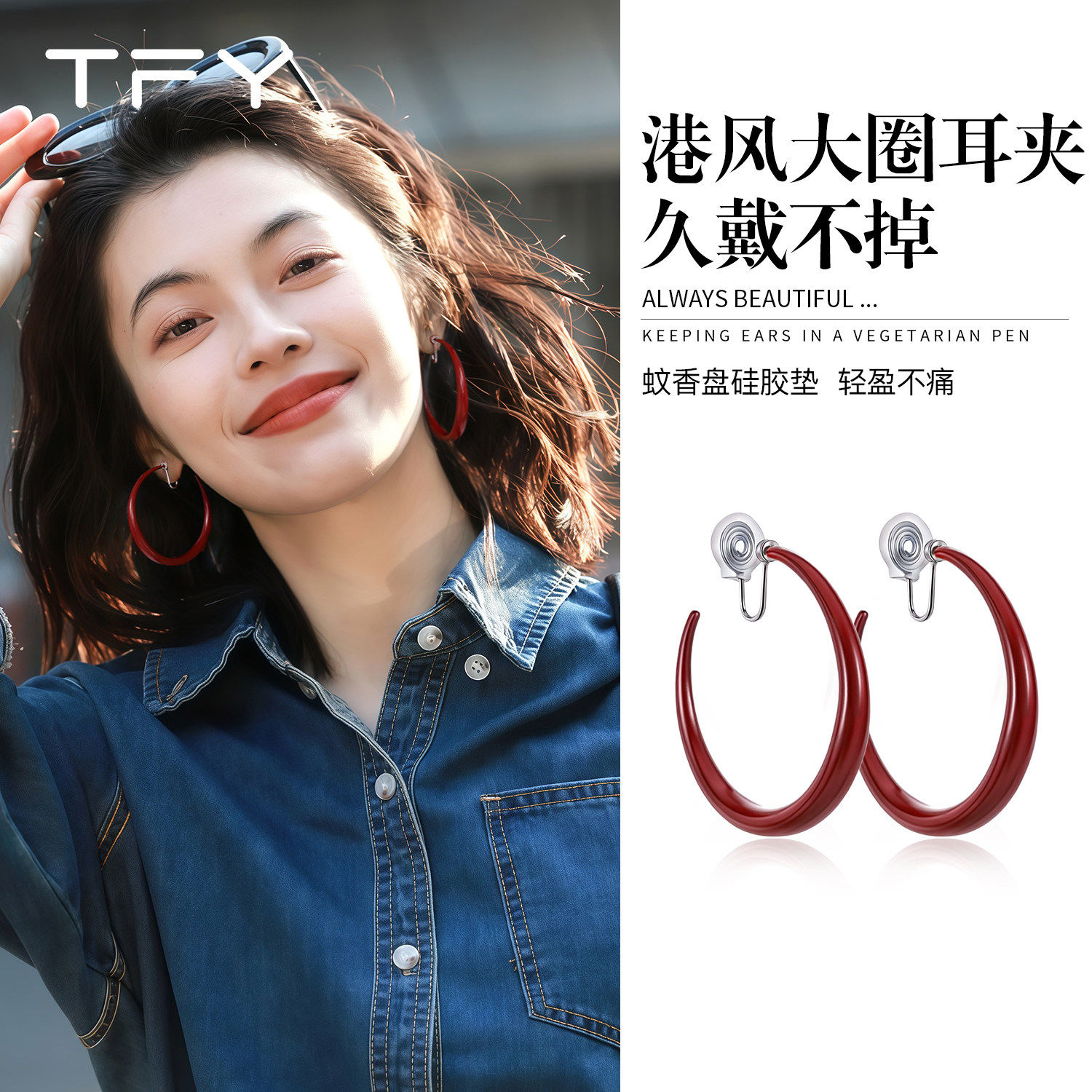 📚 复古港风红色素圈耳夹大圈女无耳洞新款轻奢高级感小众独特漂亮
