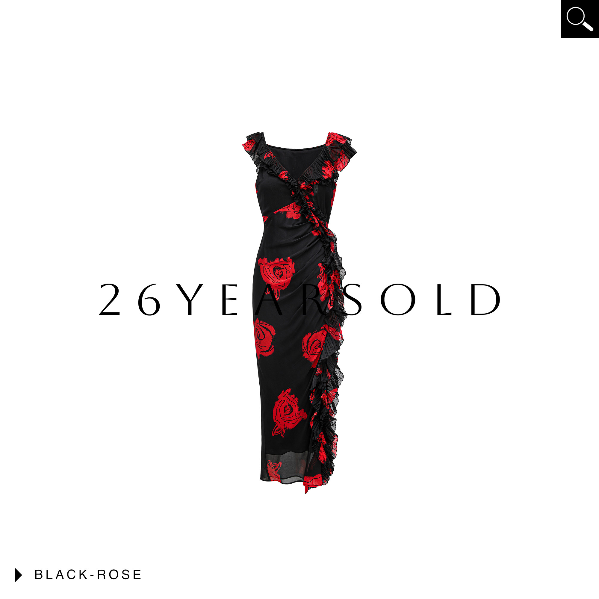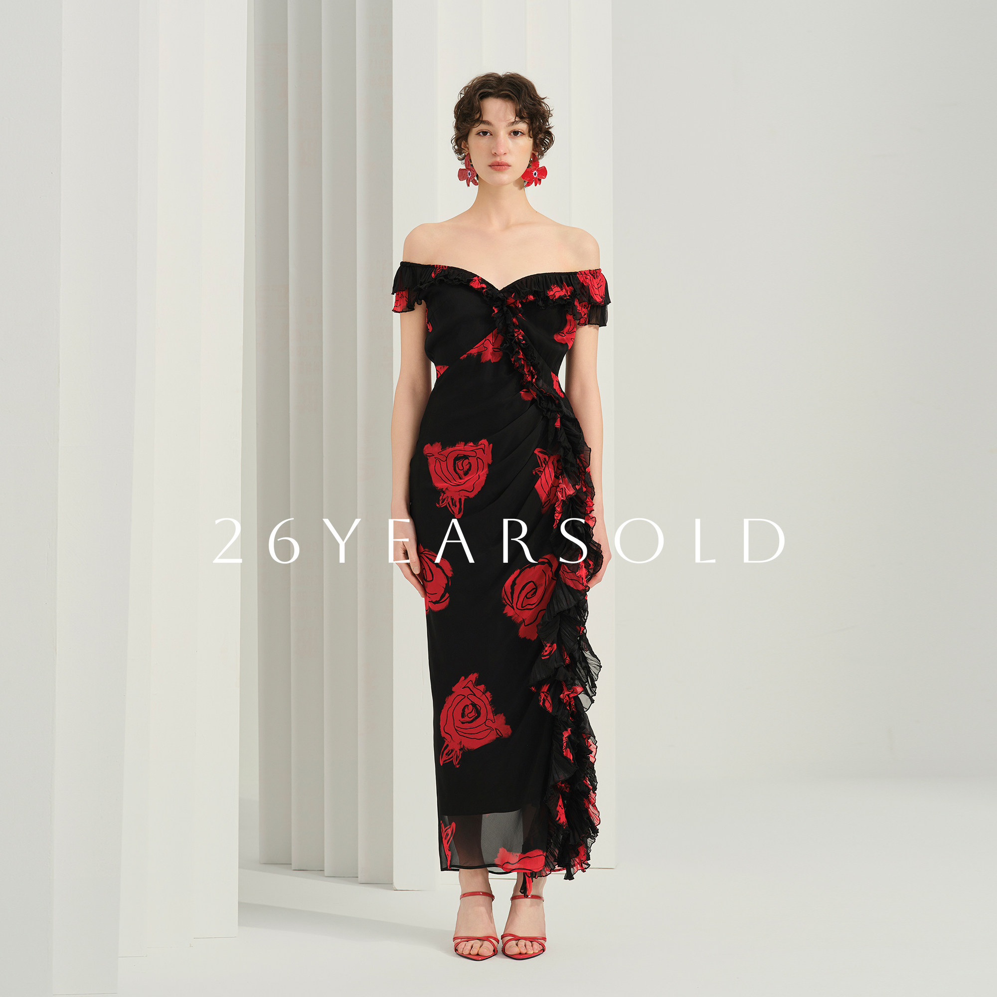 📚 26YEARS OLD桑蚕丝法式玫瑰印花荷叶边显瘦气质2026夏新款连衣裙